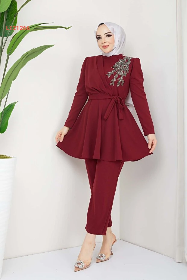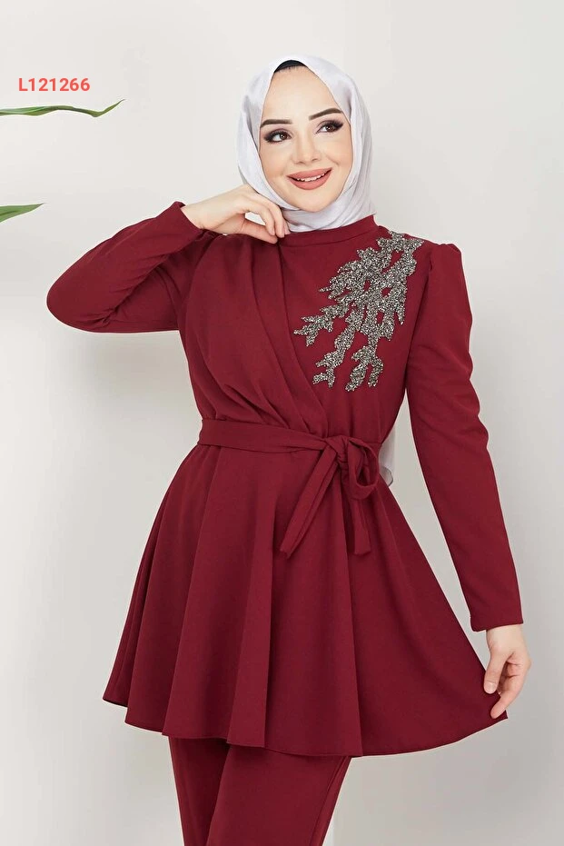 استمتعي بأناقة غير مسبوقة مع طقم مارويلا أوليانا المزين بالأحجار باللون البرغندي. يجمع هذا الطقم بين الفخامة والراحة، حيث يتميز بتصميمه العصري وجودته العالية، مما يجعله الخيار المثالي لكل مناسبة. أضيفي لمسة من السحر إلى إطلالتك مع تفاصيله الفريدة والأنيقة.