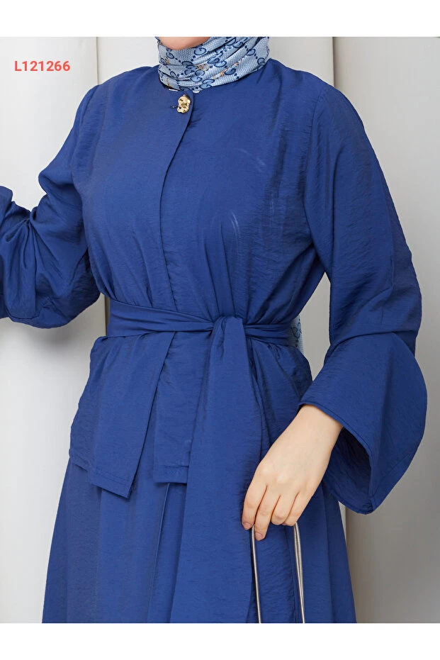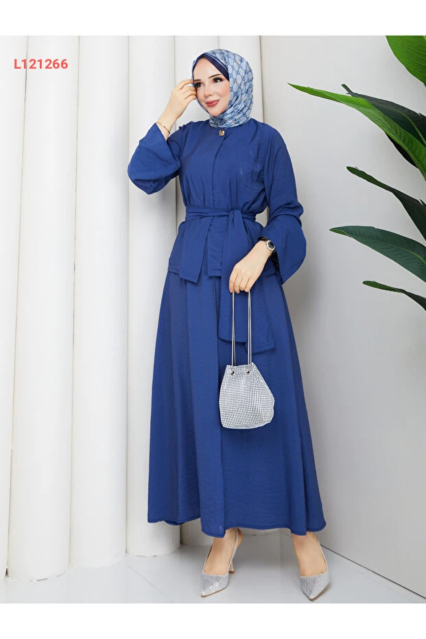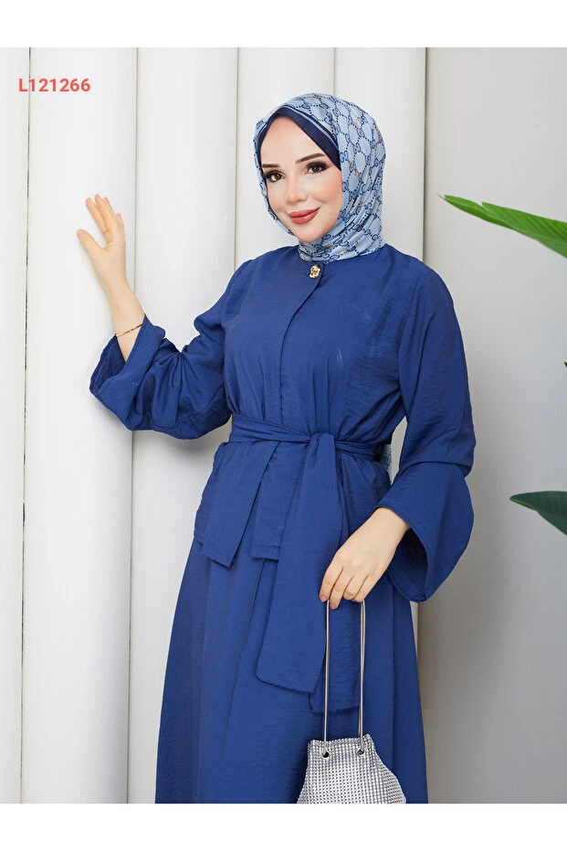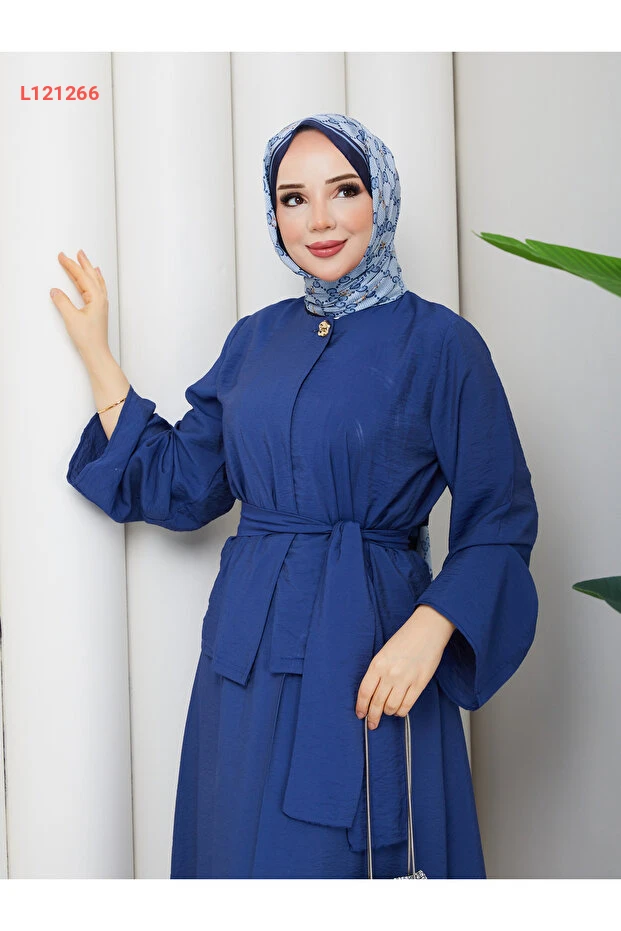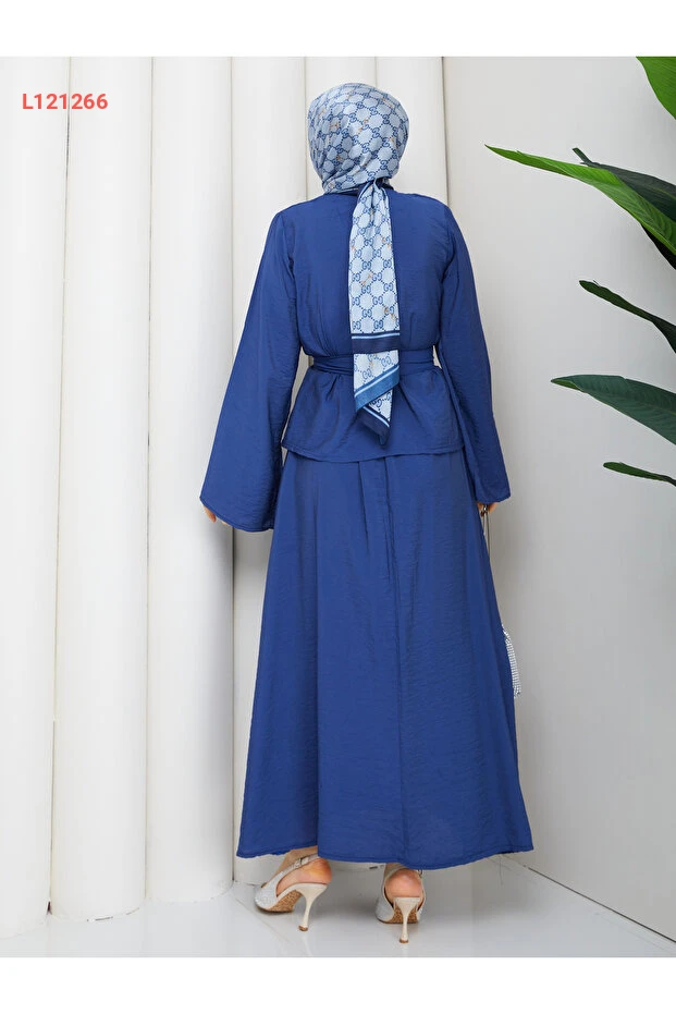 مجموعة موضة مش كوبر القماش - طقم محجبات بتصميم أنيق مع سترة مزودة بحزام وتنورة طويلة