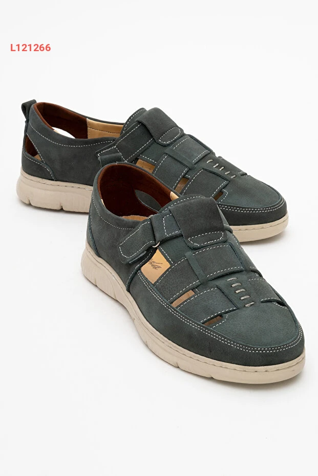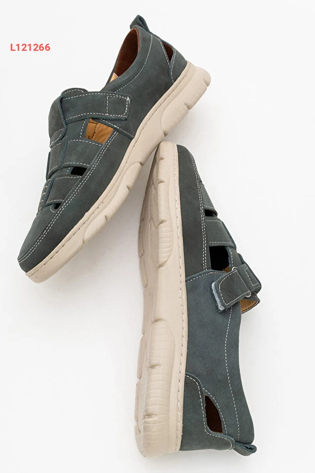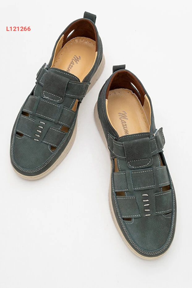 حذاء صيفي رجالي من الجلد الطبيعي، بإغلاق فيلكرو، تصميم أنيق وخفيف