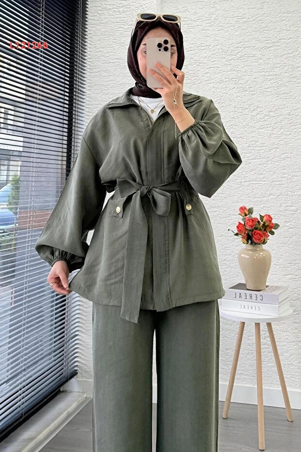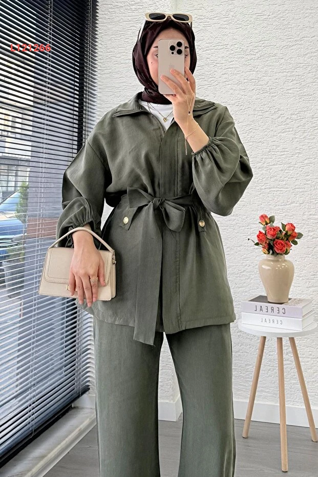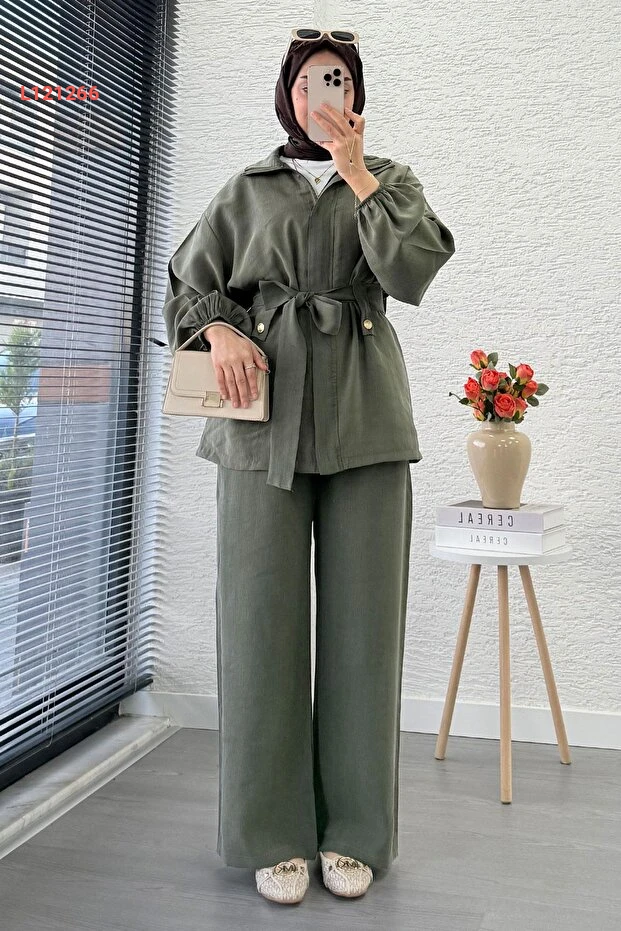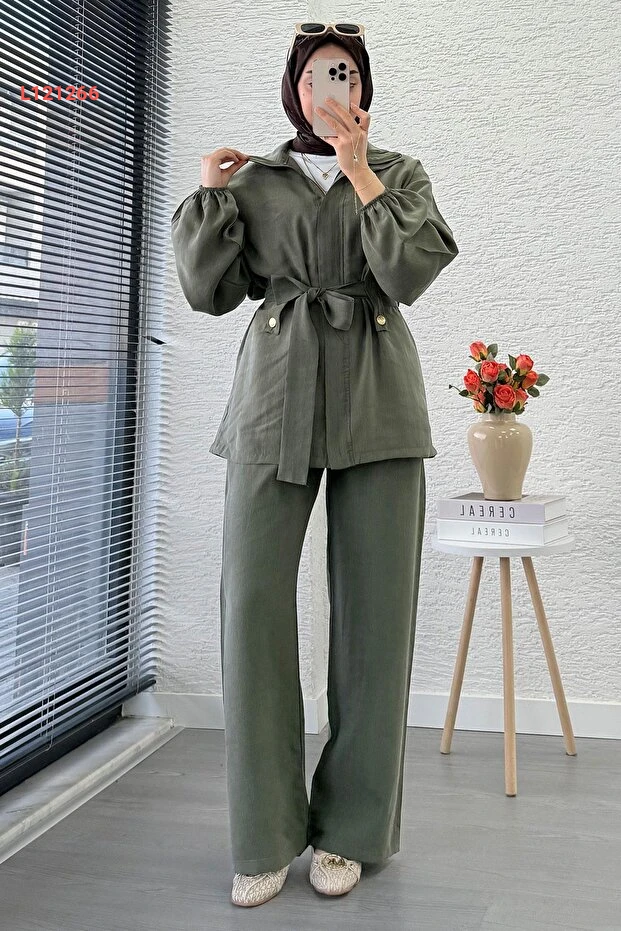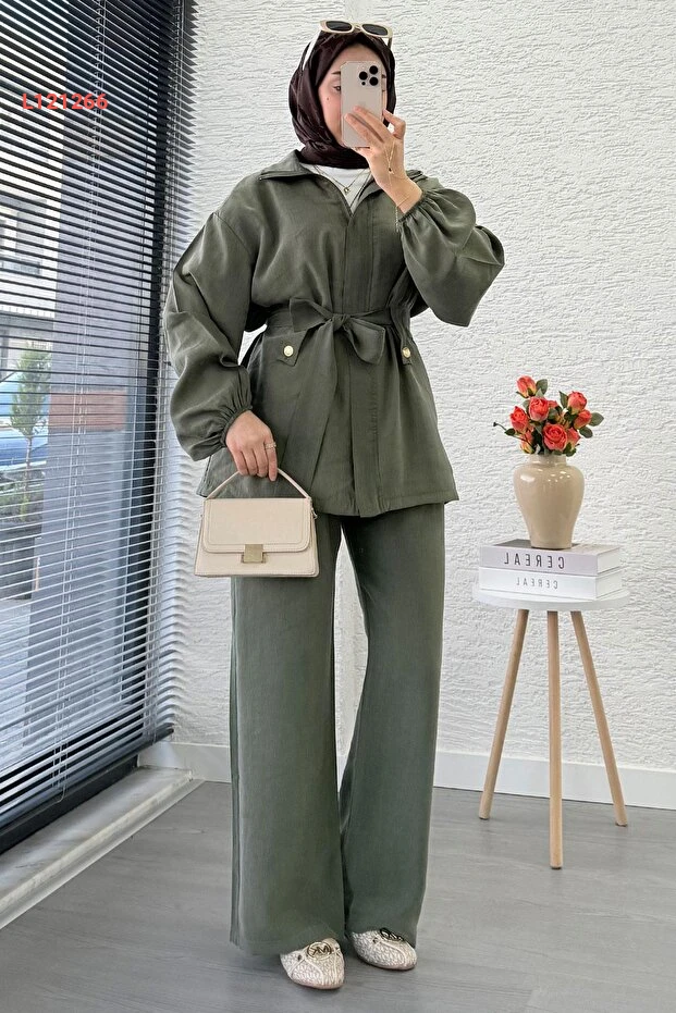 استمتعي بالأناقة والراحة مع مجموعة MELEK ARAZ الثنائية ذات الياقة الحكيمة، المصممة خصيصًا للمرأة العصرية. تأتي بتصميم مميز مع سحاب أمامي ولون هكي رائع، مما يجعلها مثالية لمختلف المناسبات، سواء كانت رسمية أو غير رسمية. تضفي هذه المجموعة لمسة من الأناقة على إطلالتك بينما تضمن لكِ راحة طوال اليوم.