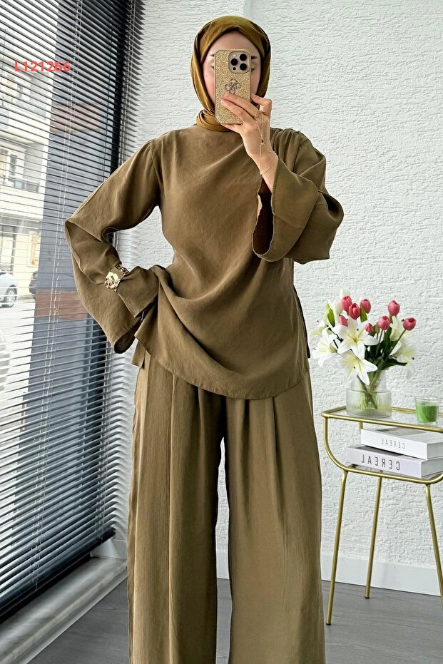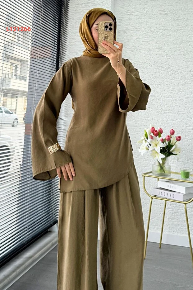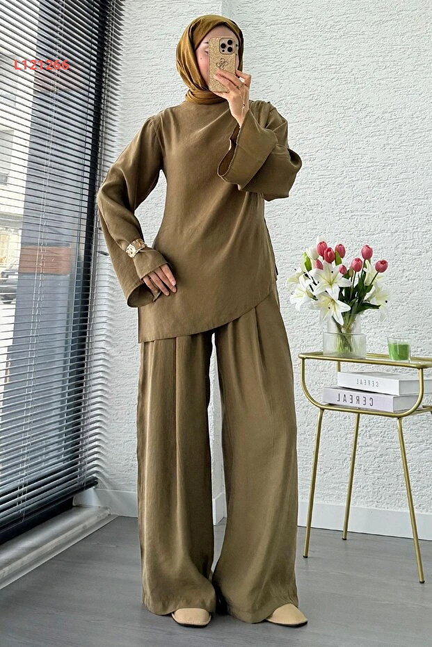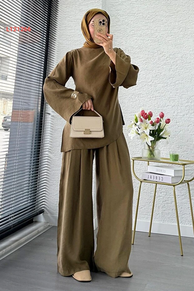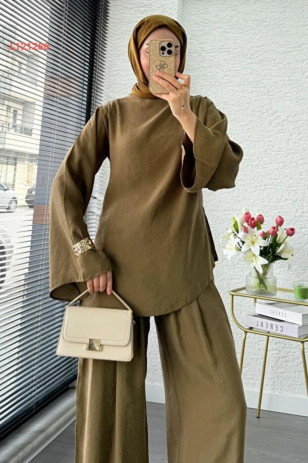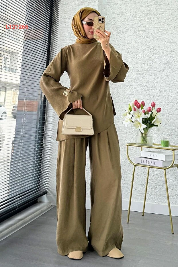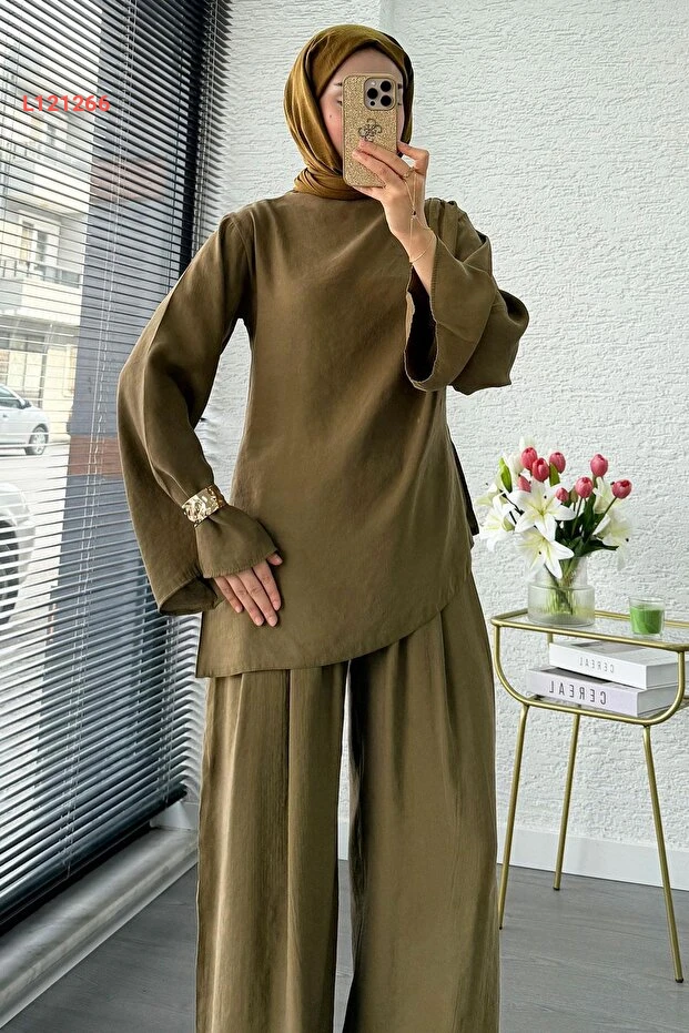 احصلي على إطلالة أنيقة وفريدة مع طقم MELEK ARAZ بتصميمه المميز ذو الكتف الواحد والقصّة غير المتساوية. يتميز بخامة عالية الجودة ولون الزيتون الجذاب، مما يجعله مثالياً للمناسبات المختلفة، حيث يجمع بين الراحة والأناقة في كل التفاصيل. ارتدي هذا الطقم لتكوني محور الأنظار في أي تجمع!