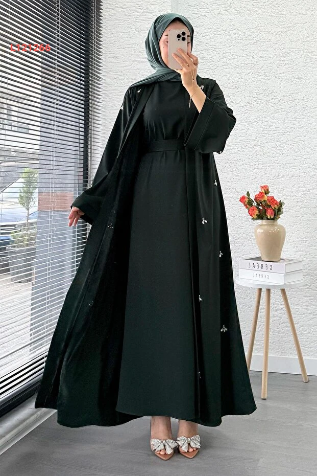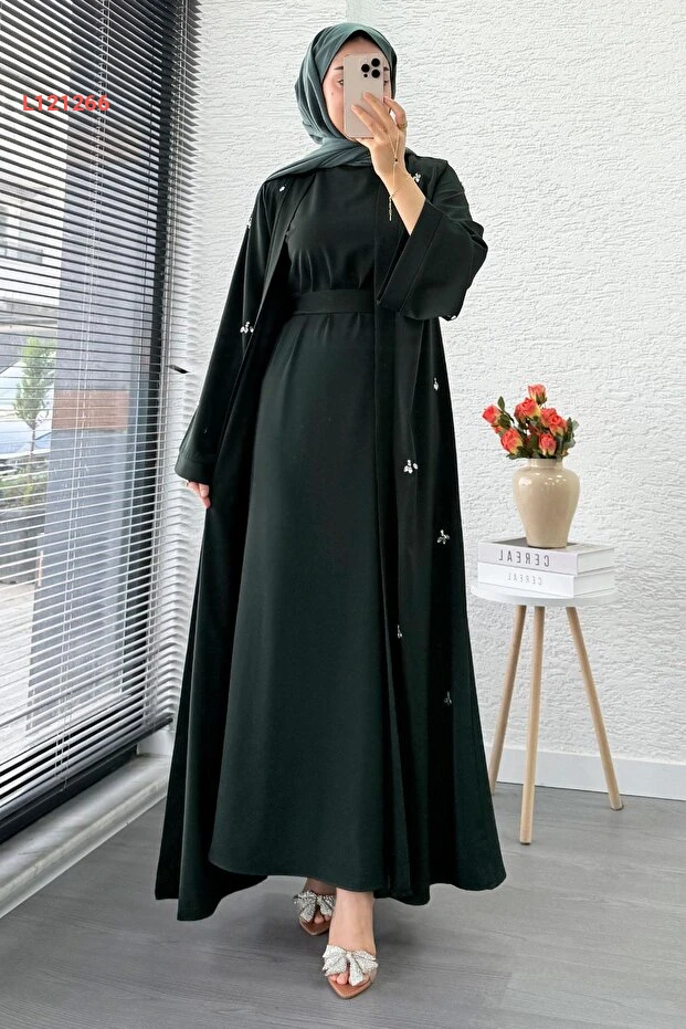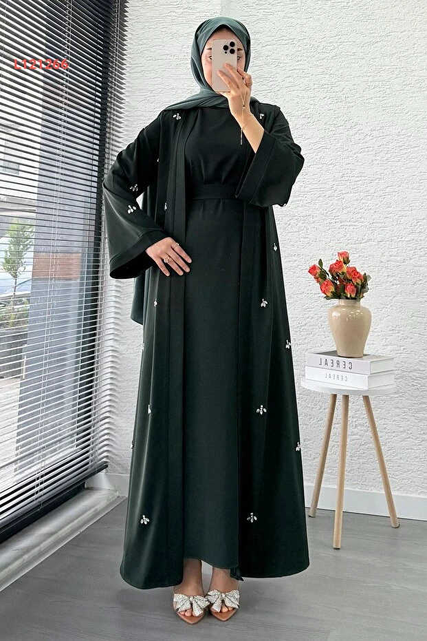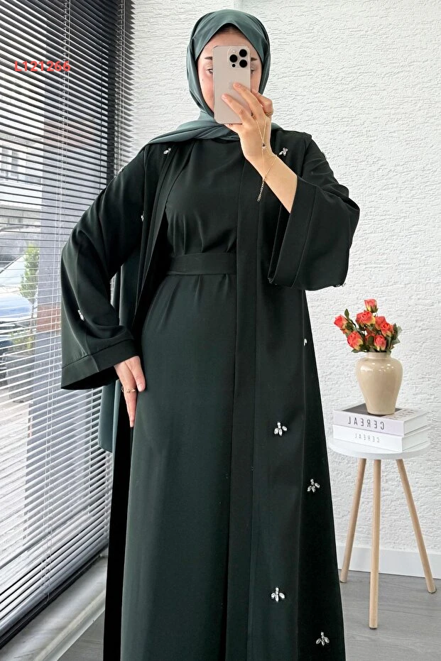 اكتشفي أناقتك مع طقم العباءة المكون من جزئين MELEK ARAZ، المزود بتفاصيل حجرية فاخرة بلون الزمرد الساحر. يتميز التصميم بأقمشة عالية الجودة تعزز من راحة الحركة، مما يجعله الخيار المثالي لجميع المناسبات. تألقي بإطلالة تجمع بين التقليدية والحداثة بكل ثقة.