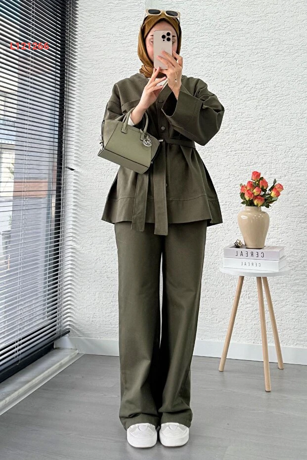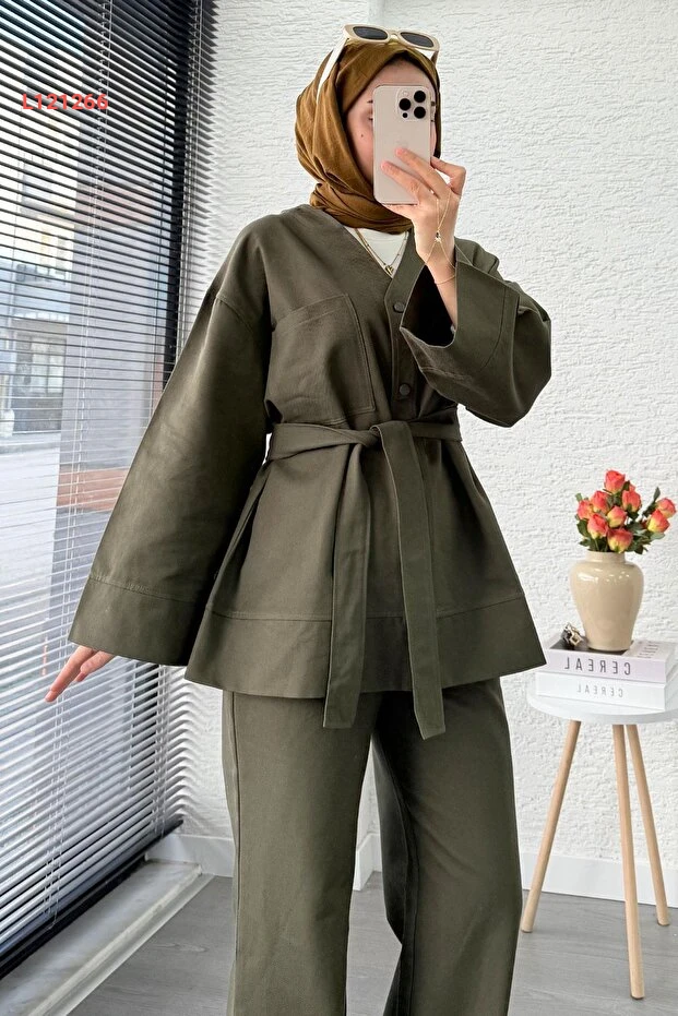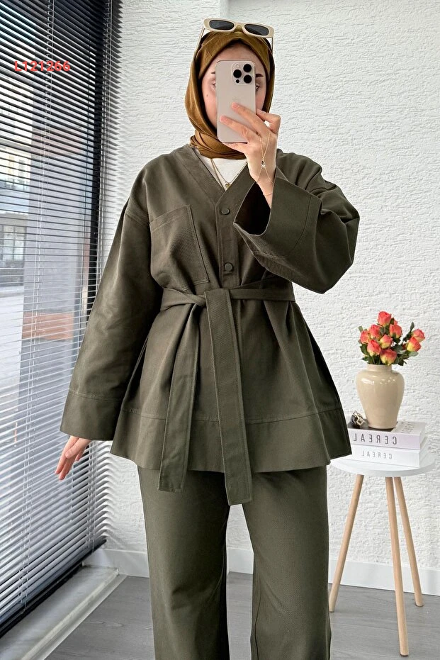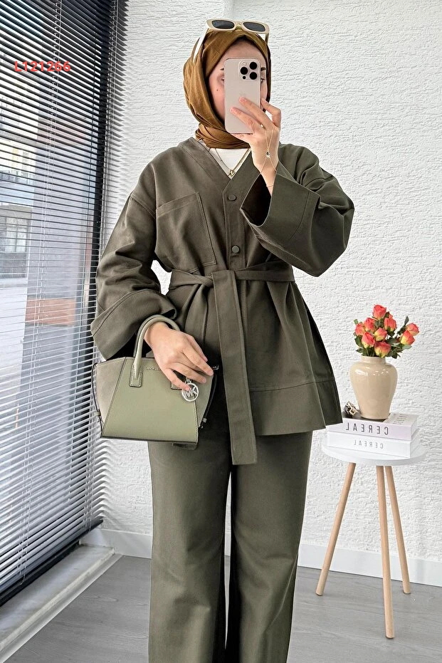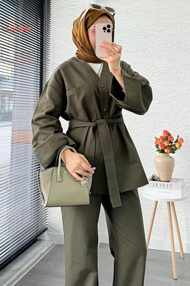 استمتع بالأناقة والراحة مع مجموعة MELEK ARAZ V ياقا دُگُم الجباردين الثنائي باللون الهاكي. تصميمها العصري يوفر لكِ مظهرًا أنيقًا يجمع بين العملية والرقي، بينما تضيف تفاصيل الأزرار لمسة مميزة. مثالية لمختلف المناسبات، حيث يمكنك تنسيقها بسهولة مع قطع ملابسك المفضلة.