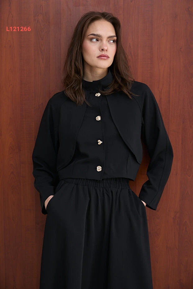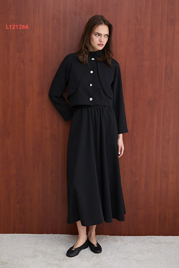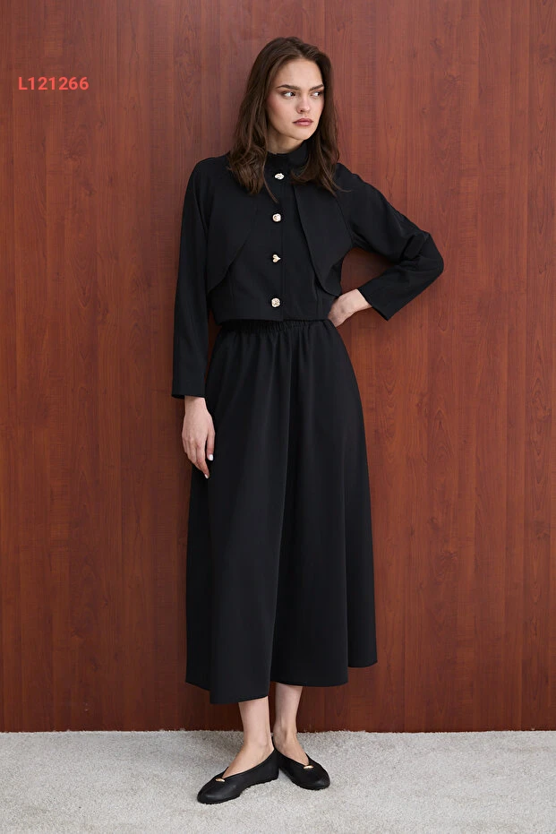 تألقي بالأناقة مع مجموعة Melike Tatar التي تضم سترة أنيقة وتنورة جذابة، مصممة لتضفي لمسة من الفخامة على إطلالتك اليومية أو في المناسبات. مصنوعة من خامات عالية الجودة، توفر لك راحة مثالية وتناسباً مميزاً، مما يجعلها الخيار المثالي لأي مناسبة. اختاري هذه المجموعة لتتميزي بأسلوب عصري وفريد يتناسب مع شخصيتك!