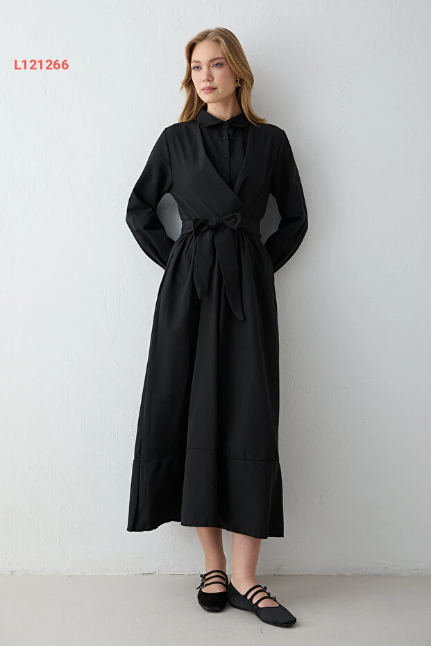 فستان بوبلين مزين بالأربطة من ميلكيه تاتار 68-6163-1