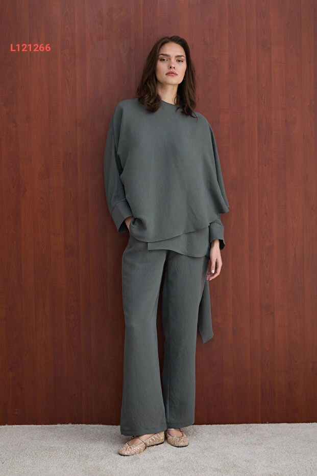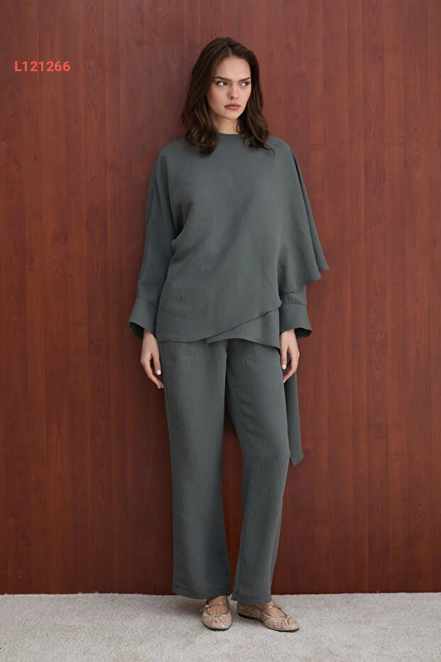 استمتع بأناقة مميزة مع طقم Melike Tatar بموديل الشال التفصيلي، الذي يجمع بين الراحة والتميز. مصنوعة من خامات المودال الناعمة، تمنحك شعوراً بالفخامة في كل مناسبة، سواء كانت رسمية أو غير رسمية. تألقي بإطلالة عصرية وجذابة تعكس ذوقك الرفيع!