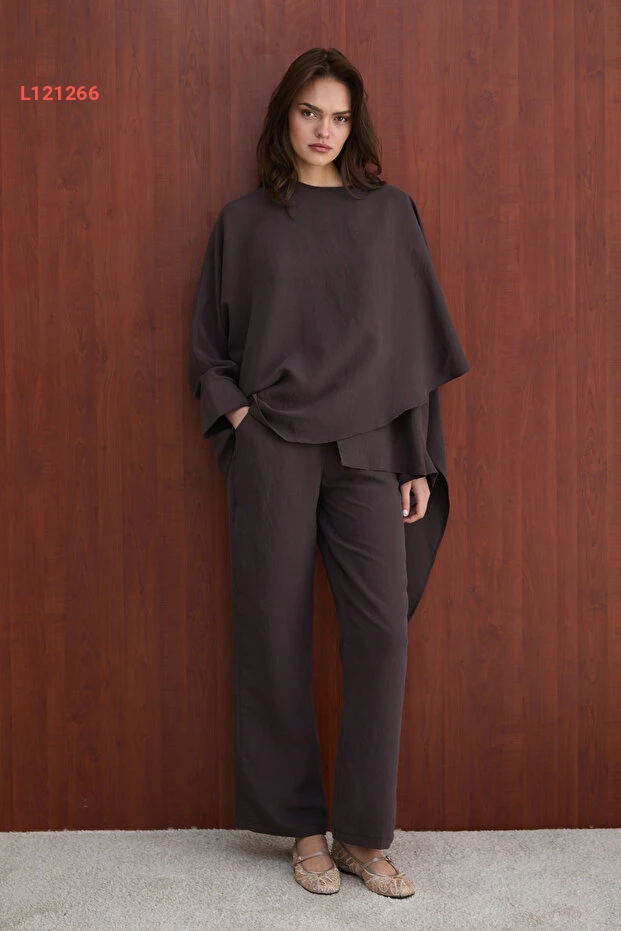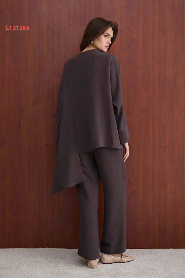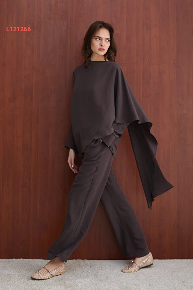 استمتع بأناقة لا مثيل لها مع طقم Melike Tatar بتفاصيل الشال المميز! مصنوعة من قماش مودال الفاخر، تجمع هذه المجموعة المثالية بين الراحة والحداثة، لتمنحك مظهرًا أنيقًا في كل مناسبة. أضيفي لمسة من التميز إلى خزانة ملابسك مع هذا التصميم الفريد الذي يعكس ذوقك الرفيع.