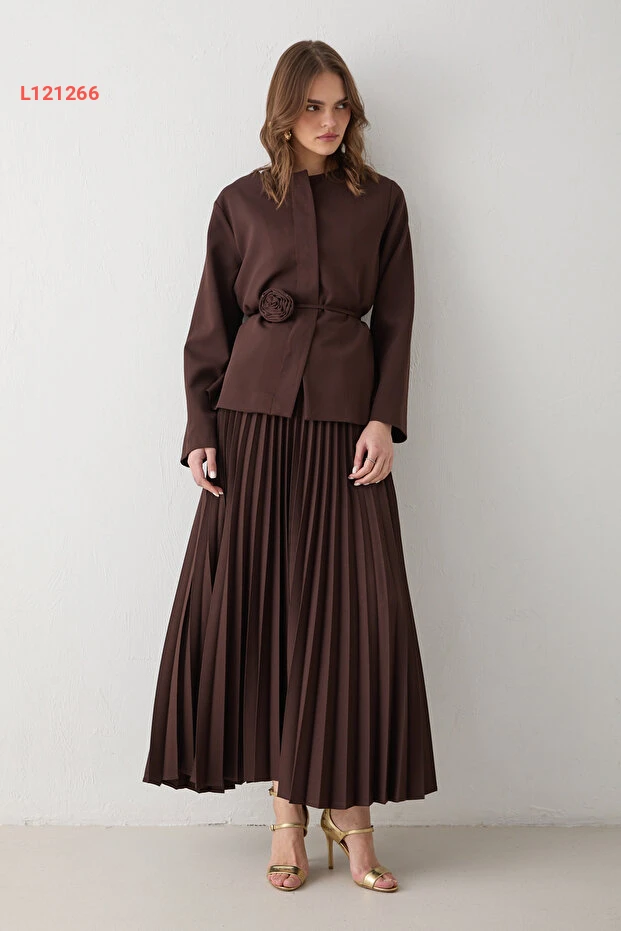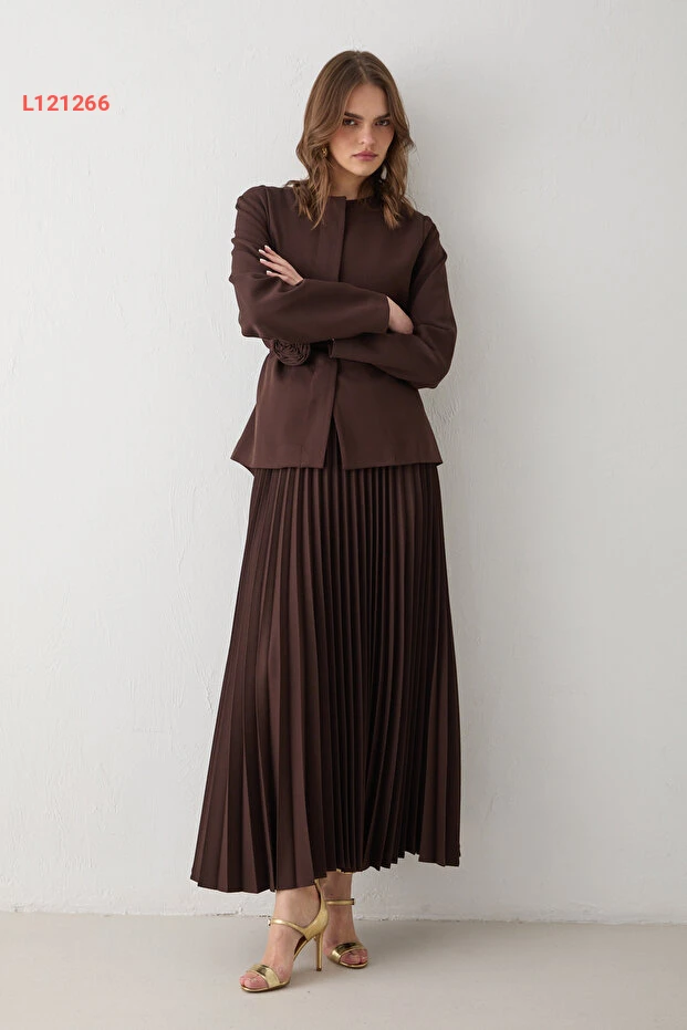 استمتع بأناقة لا مثيل لها مع مجموعة Melike Tatar، التي تجمع بين البليزر الأنيق والتنورة المميزة بتصميم plisé الجذاب. يتميز هذا الطقم بجودة عالية وراحة استثنائية، مما يجعله الخيار المثالي للمناسبات الرسمية أو الاستخدام اليومي مع لمسة من الأناقة. تألقي بثقة واختاري هذا الطقم الذي يجسد الذوق الرفيع والأناقة العصرية.