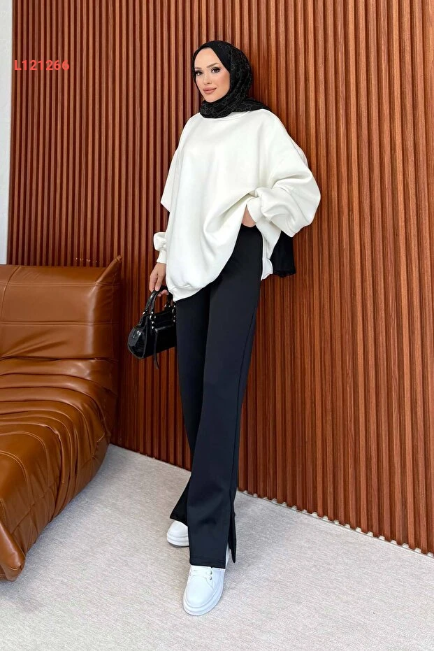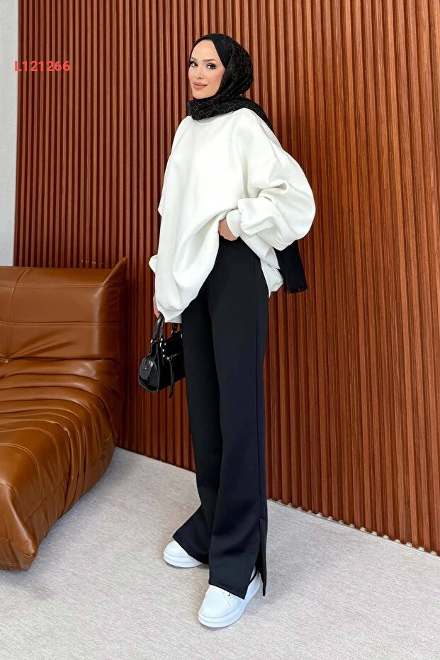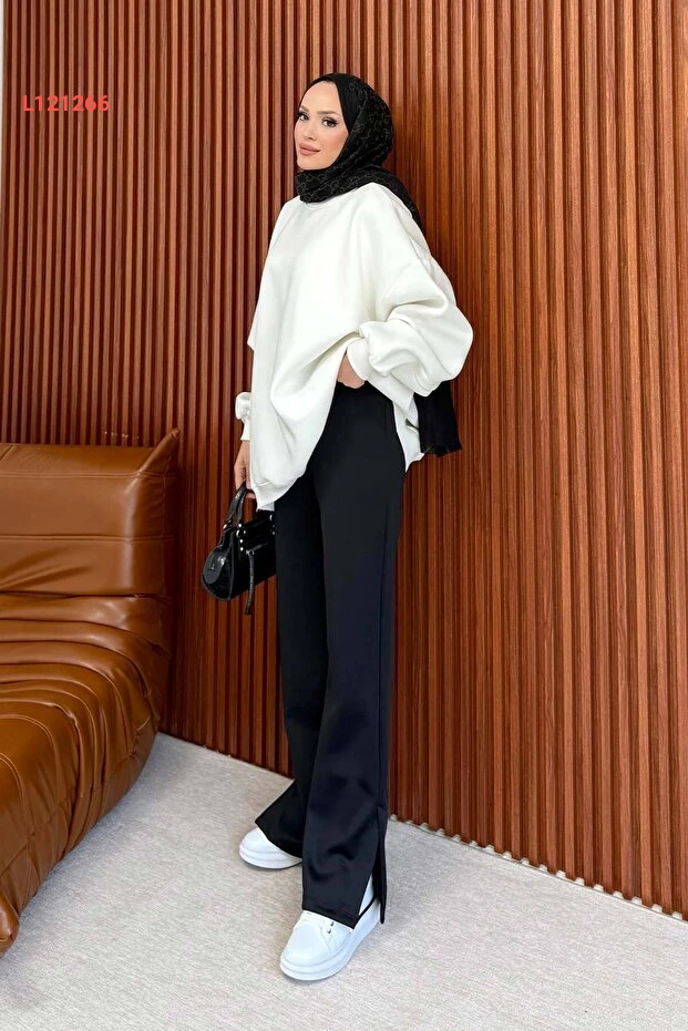 اكتشفي الأناقة والجمال مع بنطلون Melike Tatar Yırtmaçlı المصنوع من مادة السكووبا الفاخرة. تصميمه الجذاب مع الفتحات الجانبية يضيف لمسة عصرية، بينما يوفر لك الراحة والمرونة في الحركة. مثالي لمناسباتك اليومية أو الخاصة، ليجعل إطلالتك مميزة ولافتة للنظر.
