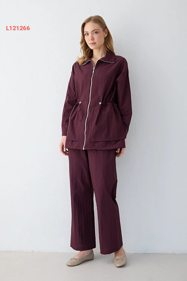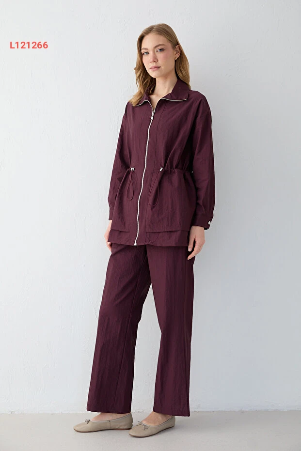 استمتعي بإطلالة ساحرة مع طقم ملحمي من Melike Tatar، الذي يتضمن بنطالً ذو سحاب أنيق. تصميمه العصري يمنحك راحة تامة أثناء الحركة، بينما يضفي لمسة من الأناقة على كل مناسبة. اختاري الأناقة والراحة في آن واحد مع هذا الطقم المثالي لكل امرأة عصرية.