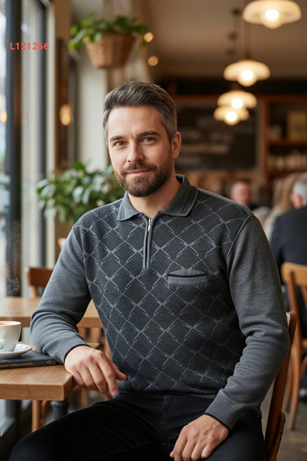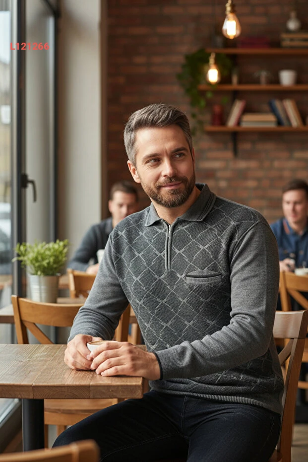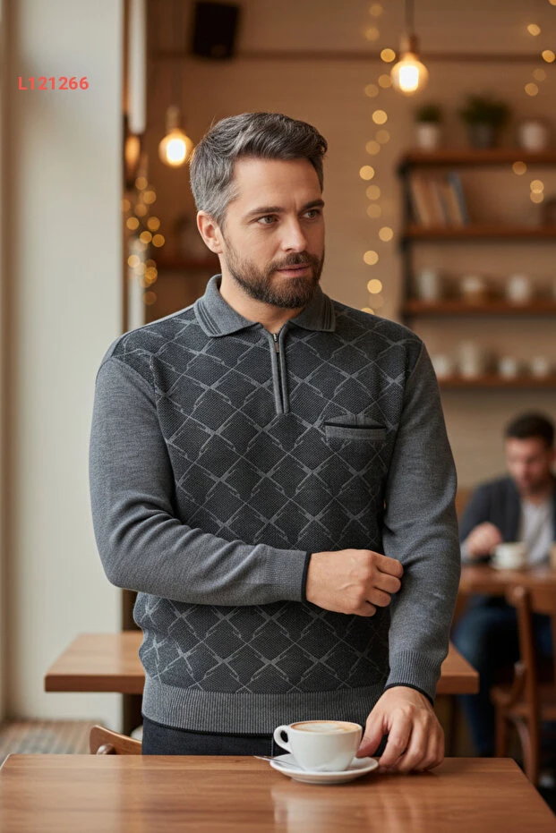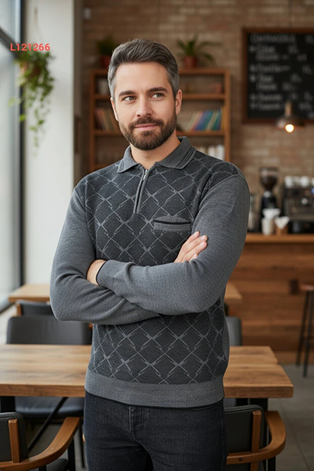 كنزة بولو رجالية رمادية مقاومة للتكوير بقصة القياس القياسية