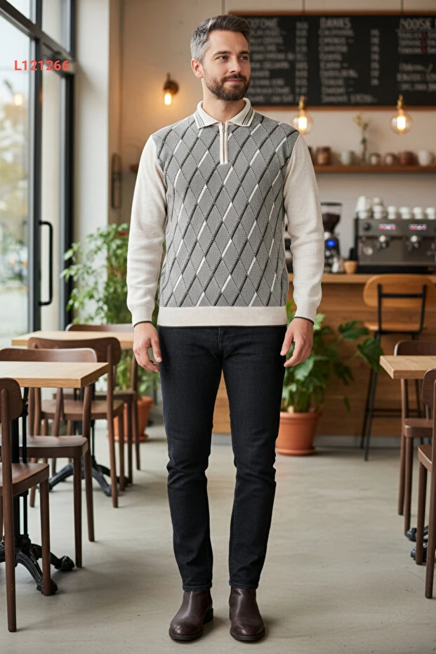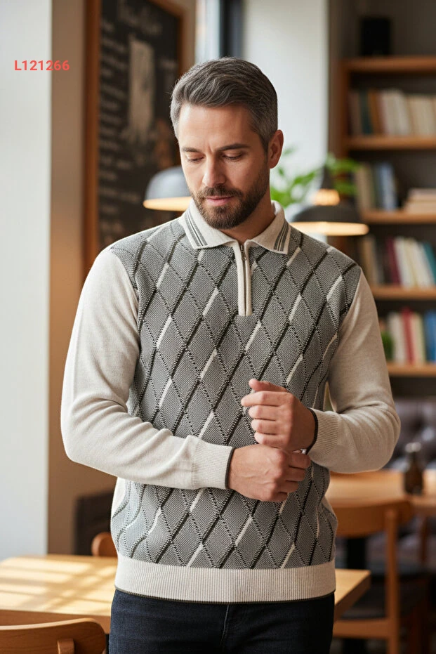 استمتع بالأناقة والراحة مع كنزة كامالا للرجال، المصنوعة من قماش مضاد للتكتل، مما يضمن لك مظهرًا دائمًا جديدًا. بفضل التصميم القياسي، يتيح لك الكنزات ارتداء مريح ومثالي لجميع المناسبات، سواء كانت رسمية أو غير رسمية. تمتع بالدفء والأناقة في آنٍ واحد مع الياقة البولو الكلاسيكية!
