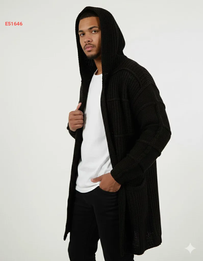 جاكيت تريكو رجالي طويل بطاقية