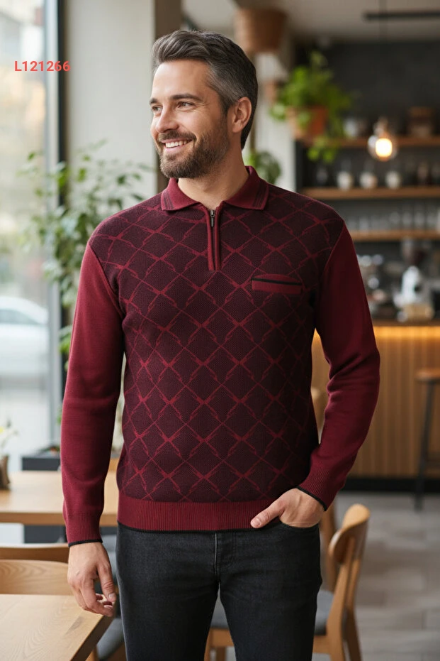 استمتع بالأناقة والراحة مع كنزة كاما للرجل باللون البوردو، التي تتميز بتقنية مقاومة الوبر لضمان مظهر أنيق دائم. تأتي هذه الكنزة بقصة قياسية وبياقة بولو، بالإضافة إلى جيب عملي يضيف لمسة عصرية، مما يجعلها خيارًا مثاليًا لموسم الخريف والشتاء. اشعر بالدفء والثقة في كل مناسبة!