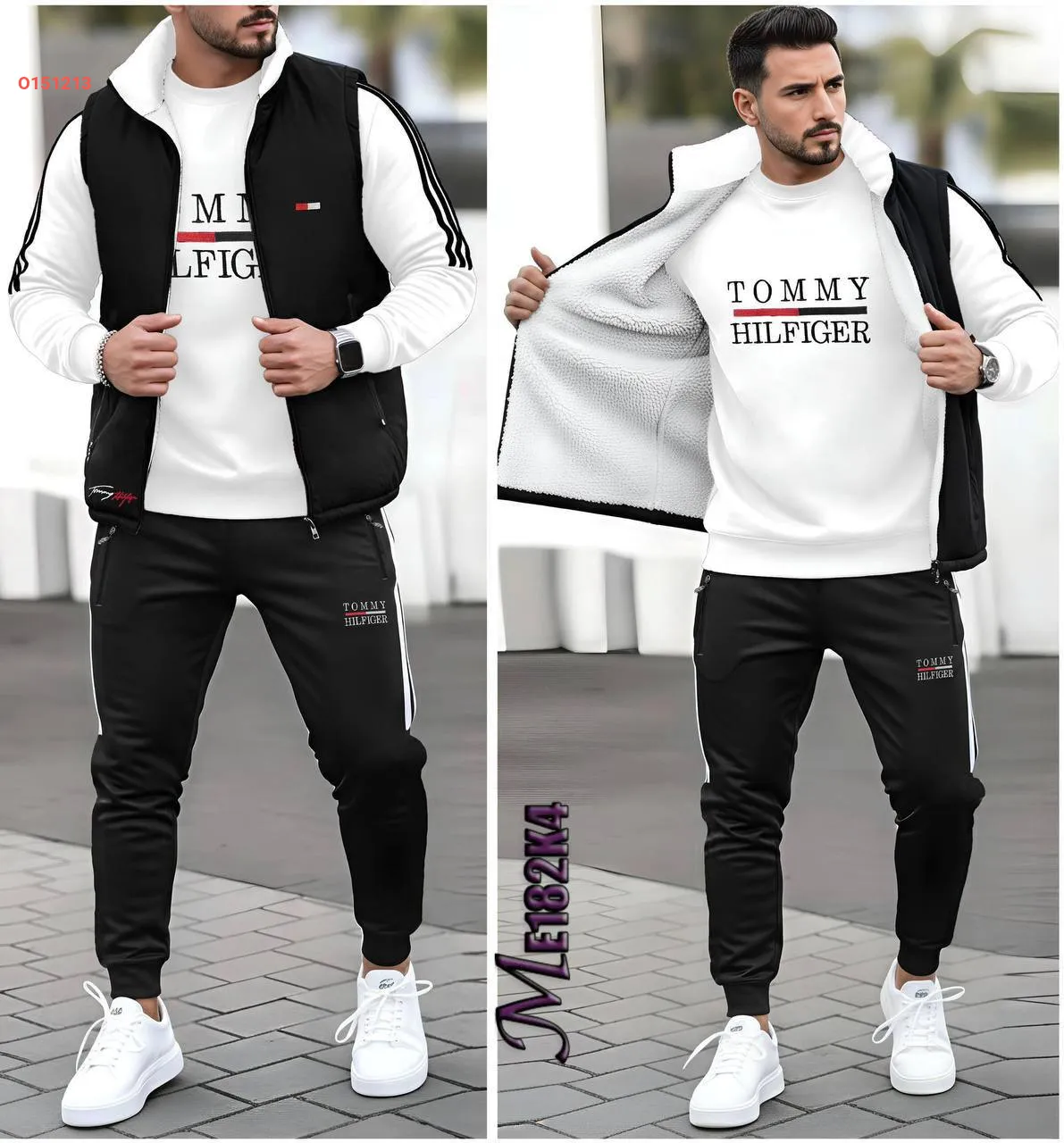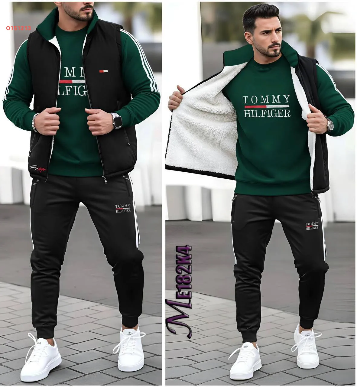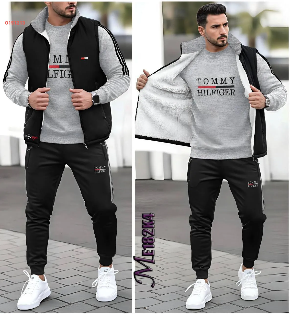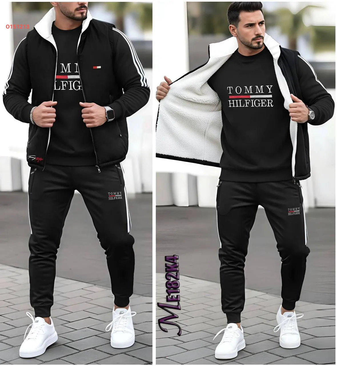 Yeni model TOMMY takim 3 parça 3 iplik Şardonlü kumaş size ( M L XL XXL)$ ] ✅❤️✅❤️🥰🥰😍 القماش : قطن ٣ خيط ، طقم ٣ قطع : جاكيت مبطن فرو + بنطال + كنزة كم ✅