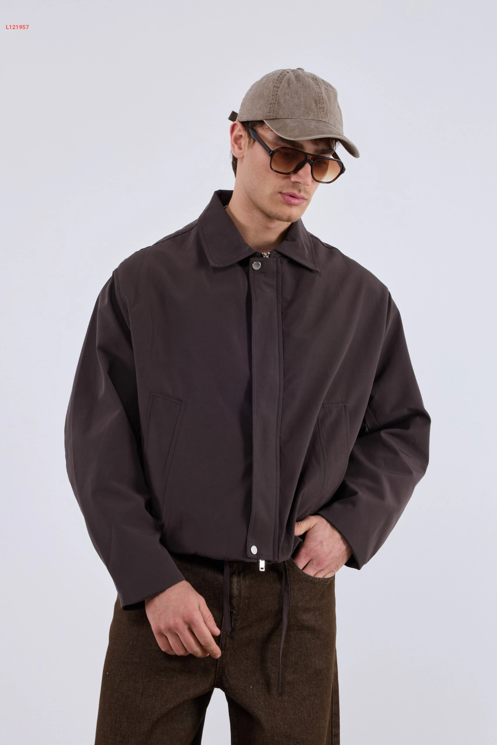 جاكيت رجالي سادة بسحاب مخفي بأزرار كبس مع جيب
