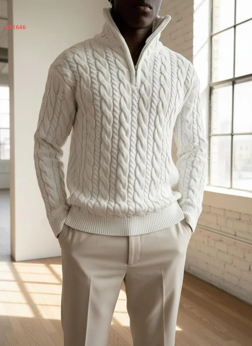كنزة رجالي صوف مجدولة