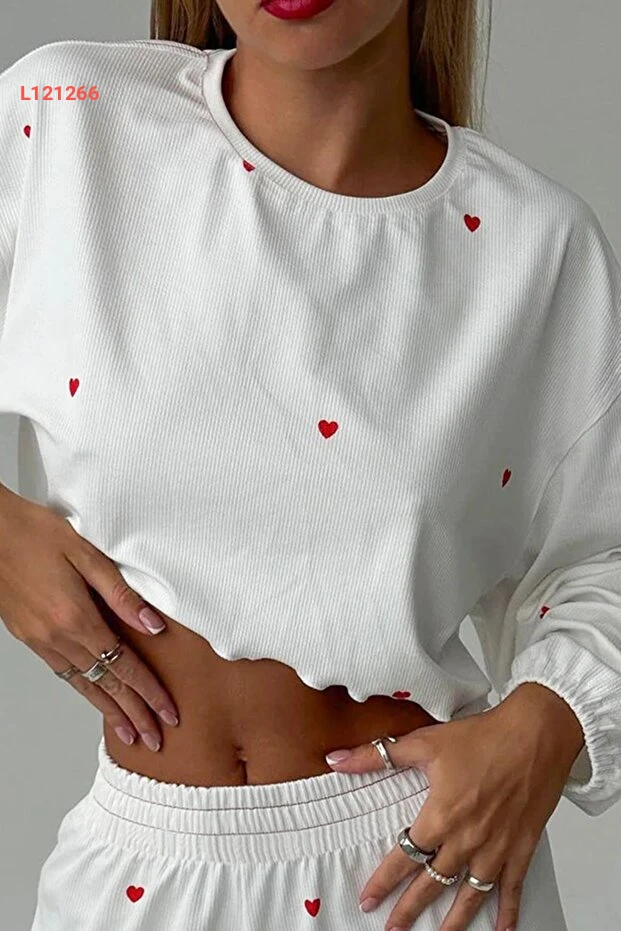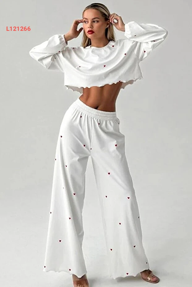 استمتع بأوقات الراحة مع طقم بيجامة Merry See، الذي يتميز بتصميمه الأنيق والأنيق مع طباعة قلب مميزة. مصنوع من قماش خفيف ومريح، يوفر لك حرية الحركة والشعور بالانتعاش طوال الليل. سواء كنت تسترخي في المنزل أو تستعد لنوم هانئ، سيكون هذا الطقم الاختيار المثالي لك!