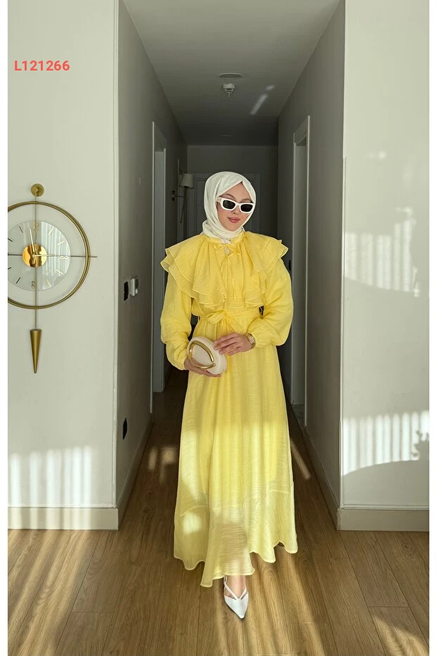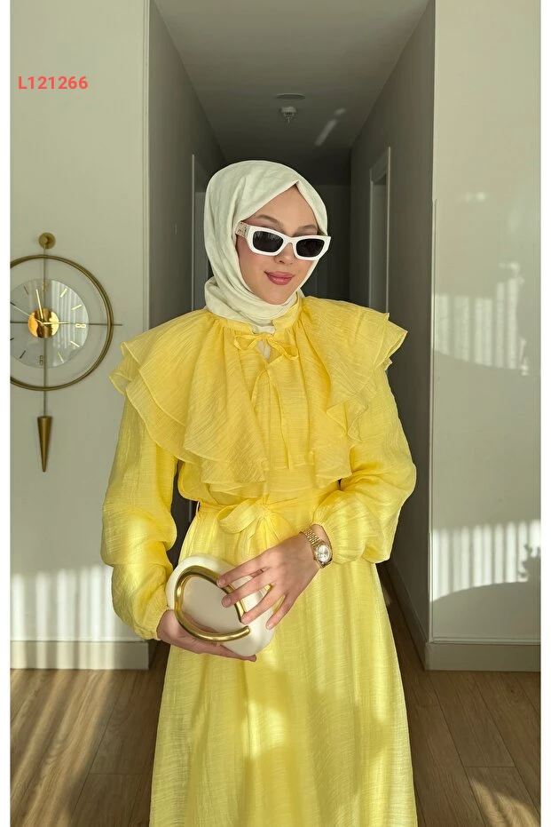اكتشفي أناقتك مع فستان "مرڤ أدا" بتصميم ياقة مزينة بالفُرَف، المصنوع من قماش التول الشفاف مع بطانة رقيقة لضمان الراحة والأناقة في كل مناسبة. يجمع بين الذوق الرفيع والمظهر العصري، مما يجعله الخيار المثالي لإطلالة تفيض بالأنوثة والتميز.