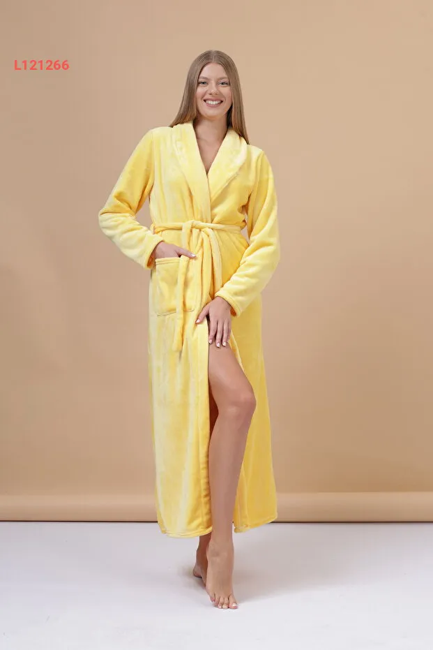 استمتع بالراحة والأناقة مع رداء Mervemoda الأصفر من الويلسوف، حيث يجمع بين الجودة العالية والتصميم العصري. يتميز بطبعة دافئة وناعمة تمنحك شعورًا بالرفاهية، مما يجعله الخيار المثالي للاسترخاء في المنزل. اجعلي لحظاتك المريحة أكثر تميزًا مع هذا البورنو ذو الطول المناسب!