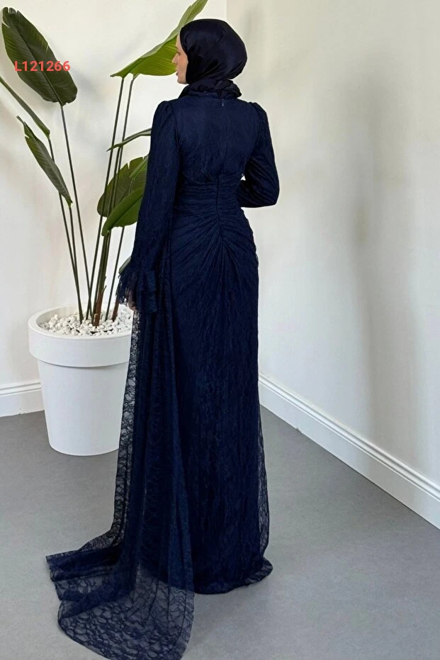 فستان سهرات دانتيل بزخارف دلفين لون كحلي من ميرفين أكيوز