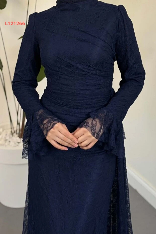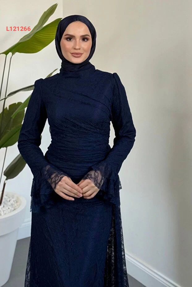 اكتشفي أناقتك المميزة مع فستان MERVEN AKYÜZ بتصميم دلافين ورقبة دانتيل رائعة. يتميز بلون البحرية الجذاب وتفاصيل الفُرفُر التي تضفي لمسة من الأنوثة الساحرة. هذا الفستان هو الخيار المثالي لمناسباتك الخاصة، حيث يجمع بين الراحة والأناقة في آن واحد.