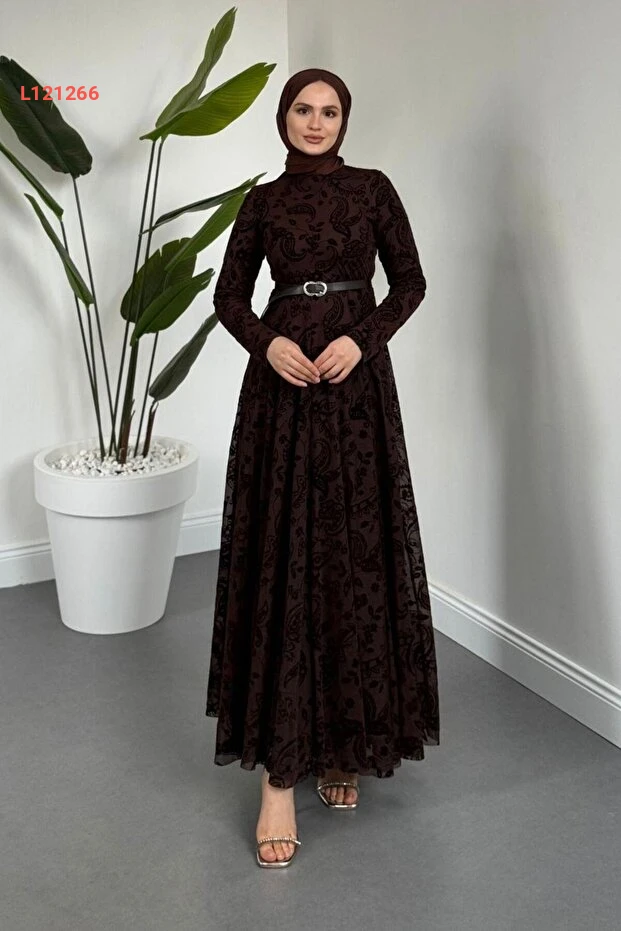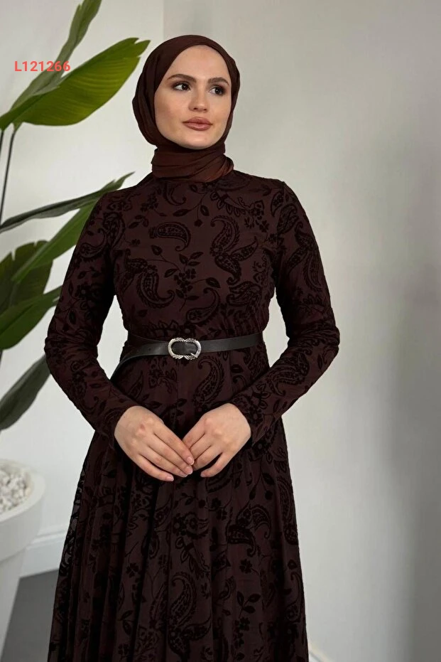 ارتقِ بإطلالتك مع فستان "Jumana Kemerli Desenli Tül" من MERVEN AKYÜZ. يتميز بتصميمه الأنيق من التول مع حزام يحدد الخصر، مما يضفي لمسة أنثوية رائعة. يُعد اللون البني الجذاب والنقوش الفريدة إضافة مثالية لجمالك في المناسبات الخاصة أو الاستخدام اليومي.