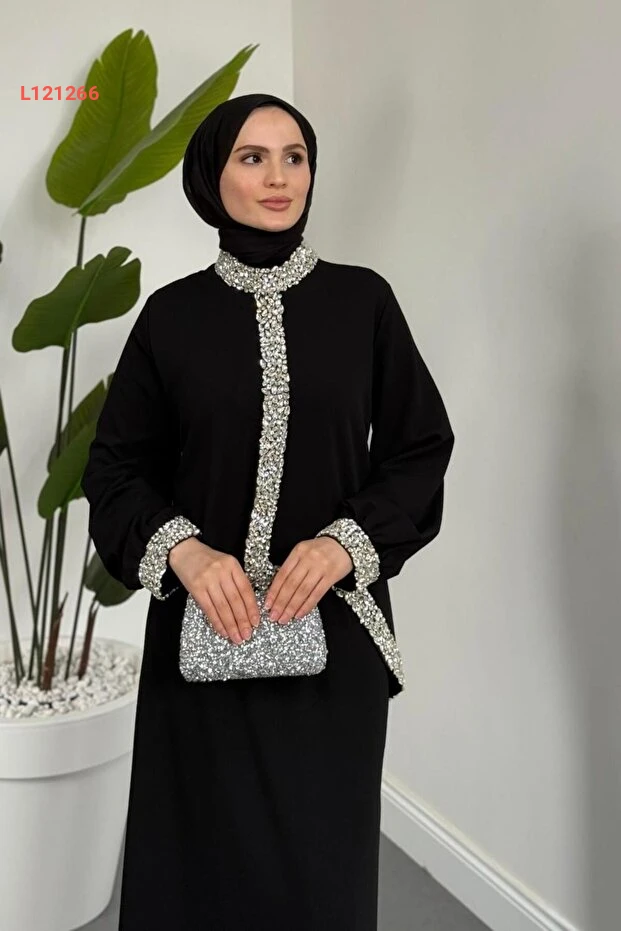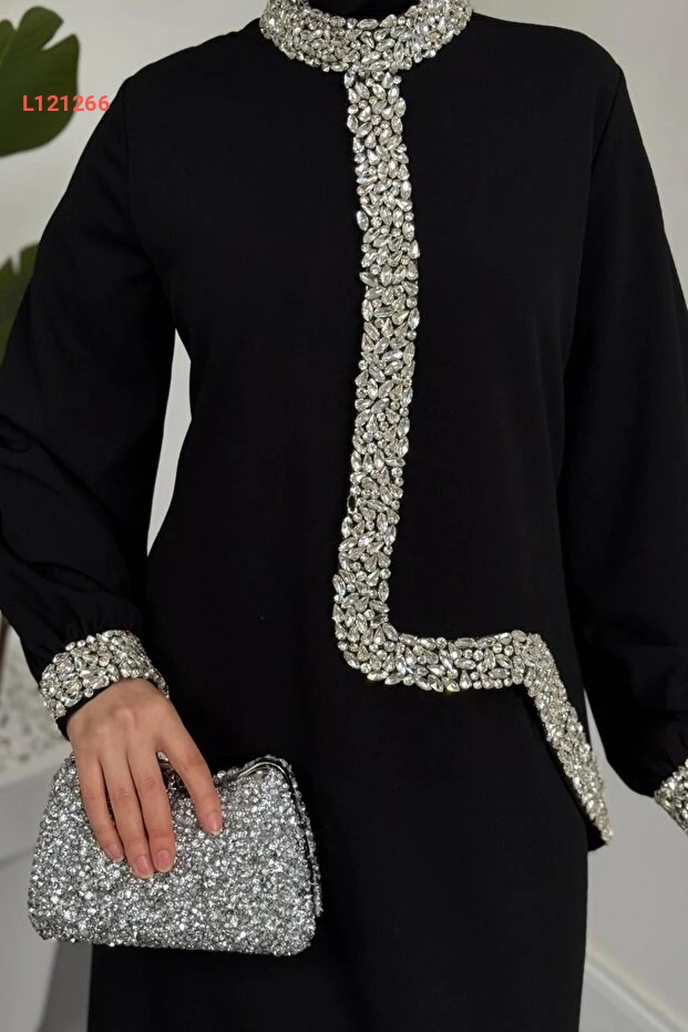 اكتشفي أناقتك مع فستان "MERVEN AKYÜZ Mahin Taşlı Krep Abiye" الأسود، الذي يجسد الفخامة بجمال تصميمه الفريد. يتميز بقماش الكريب الناعم وزخارف الحجارة اللامعة، مما يمنحك لمسة جاذبية راقية تناسب مختلف المناسبات. ارتدي هذا الفستان المثالي لتظهري بأبهى طلة وتلفتي الأنظار في كل لحظة.