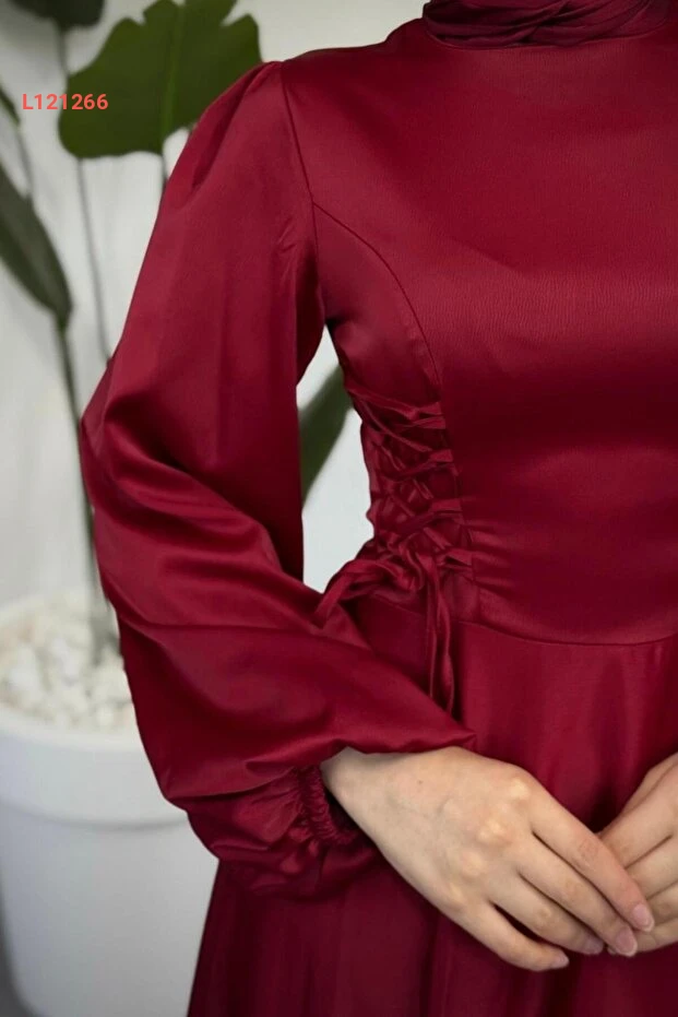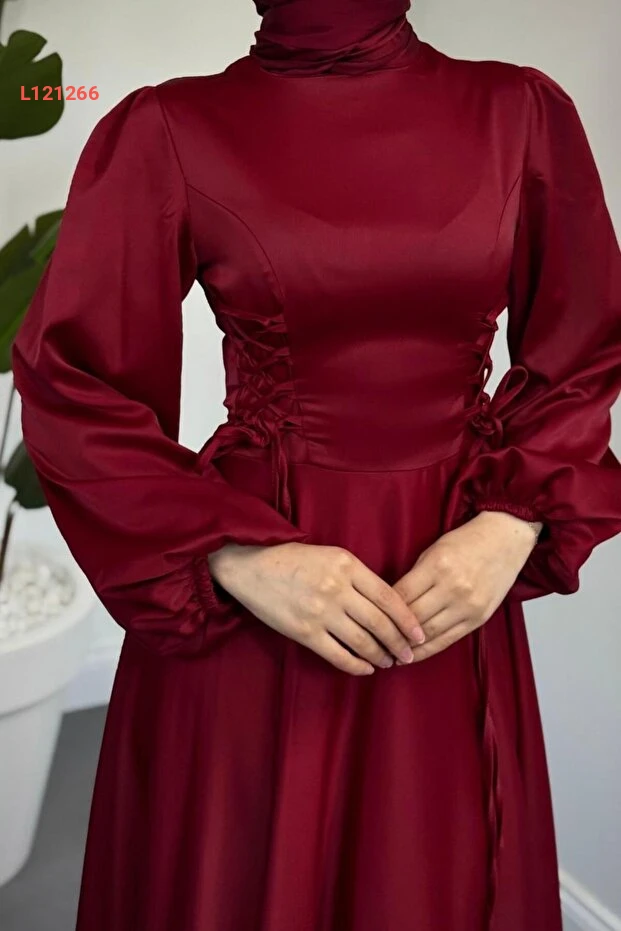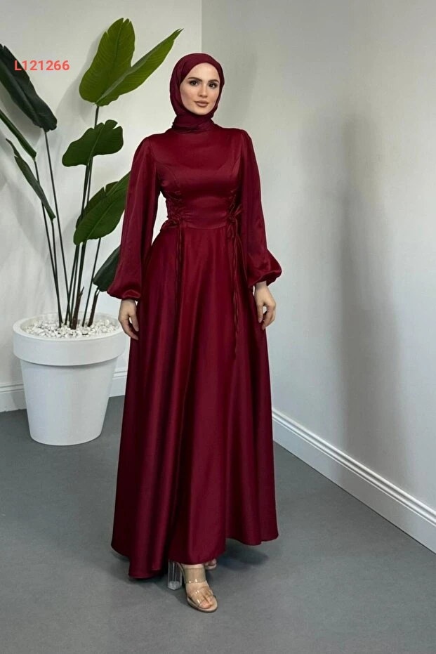 تألقي بإطلالة ساحرة مع فستان "MERVEN AKYÜZ Orya" الساتاني بورجوندي، المصمم بأناقة رائعة مع جوانب مضغوطة تضيف لمسة فريدة إلى الشكل. يجمع بين الراحة والفخامة، مما يجعله الخيار المثالي لمناسباتك الخاصة ليضمن لك إطلالة تحبس الأنفاس.