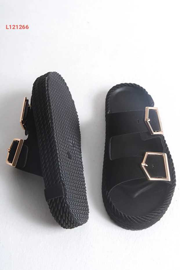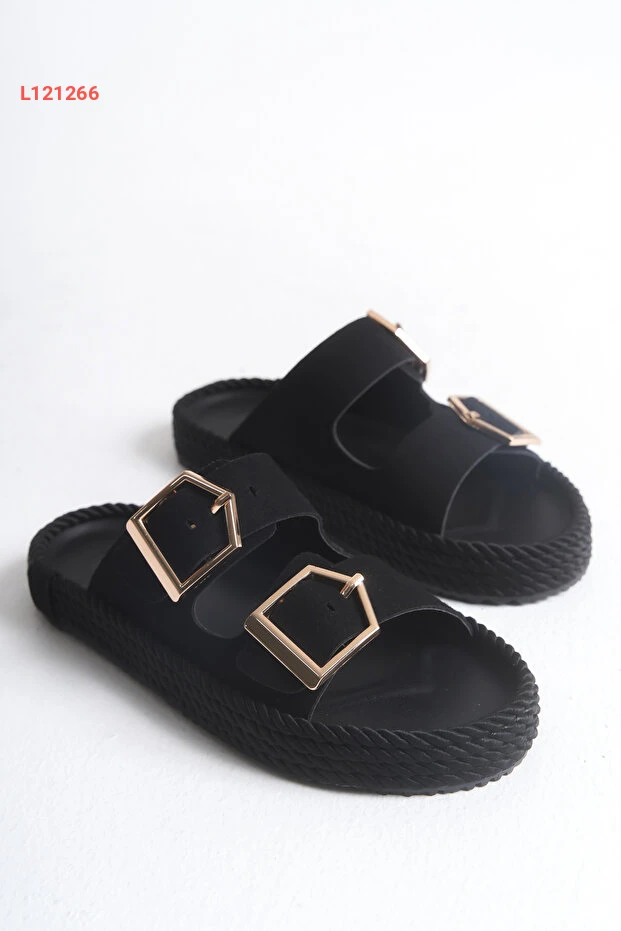 meyra'nın ayakkabıları Kadın Siyah Süet Ortopedik Taban Çift Toka Hasır Terlik