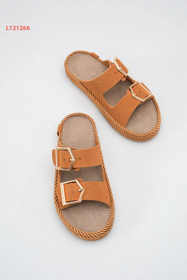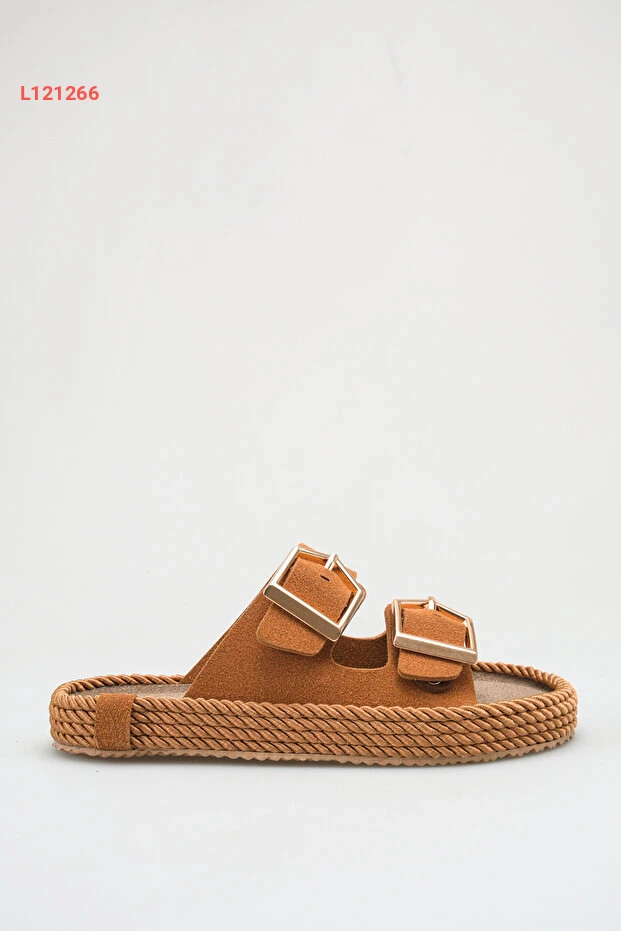 meyra'nın ayakkabıları Kadın Taba Mat Ortopedik Taban Çift Toka Hasır Terlik عالي الجودة. مثالي للاستخدام اليومي مع متانة وتصميم ممتاز.