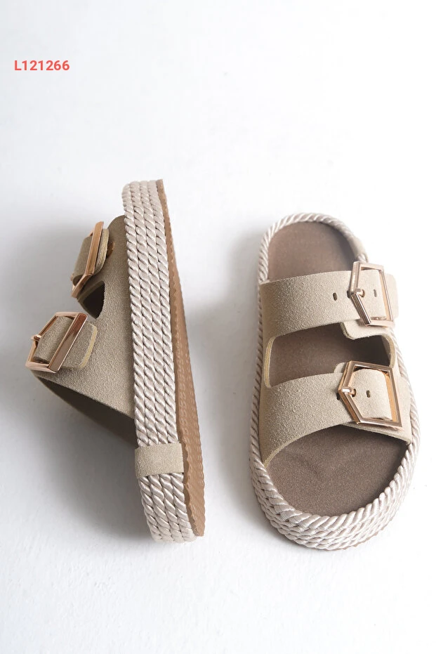 meyra'nın ayakkabıları Kadın Ten Ortopedik Taban Çift Toka Hasır Terlik