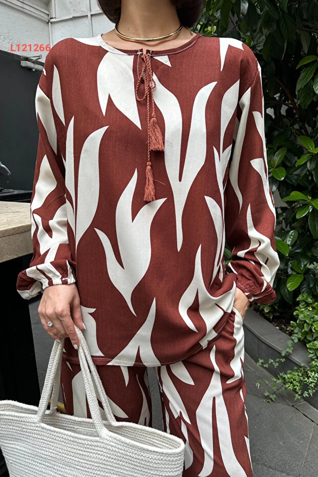 استمتعي بأناقة لا مثيل لها مع طقم mezqa النسائي، الذي يتميز بتصميمه العصري بلون الكريمي وزخارفه الأنيقة. يتكون من أعلى وأسفل مصنوعين من قماش مريح، مع واجهة مشدودة حول العنق تضيف لمسة من الأنوثة. هذا الطقم المثالي يضمن لكِ إطلالة جذابة ومليئة بالثقة في كل مناسبة.