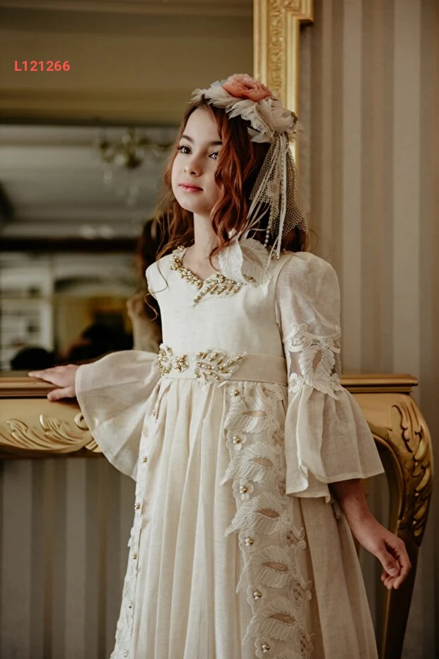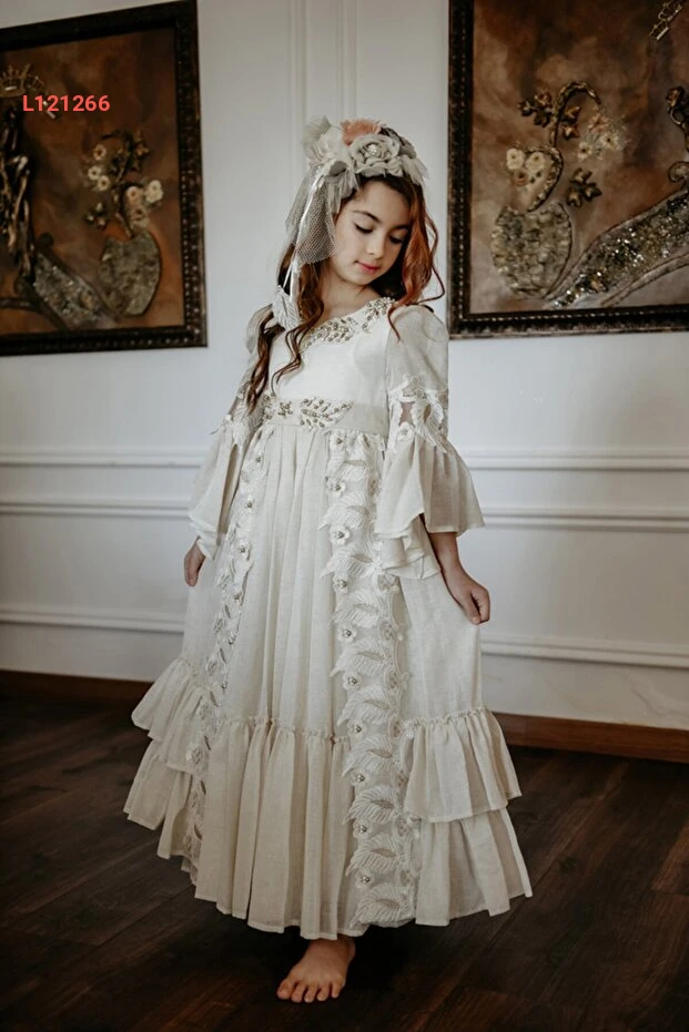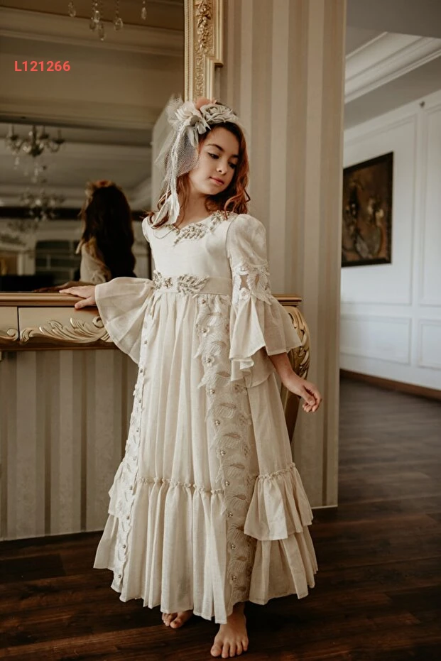 فستان عيد ميلاد طويل بتصميم حصري من ميالورا للأطفال مع تاج زينة من إيميل إبراء أوزدمير