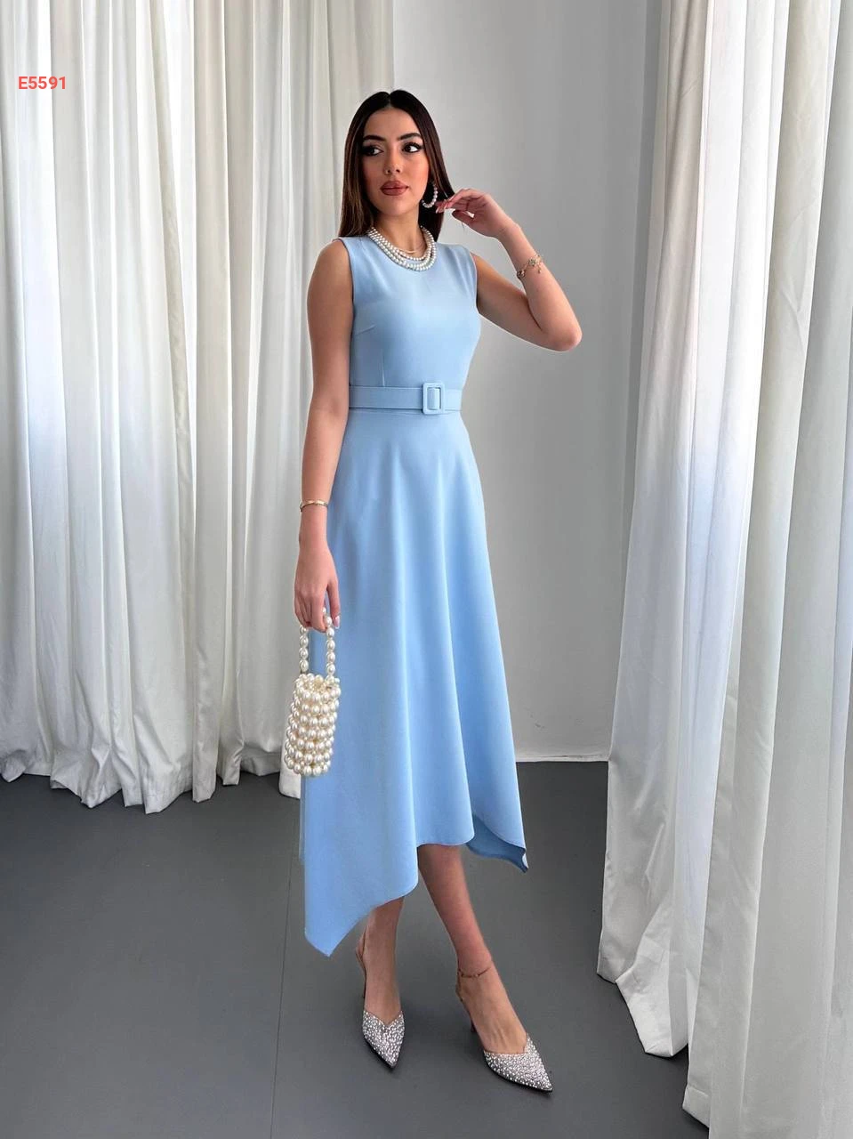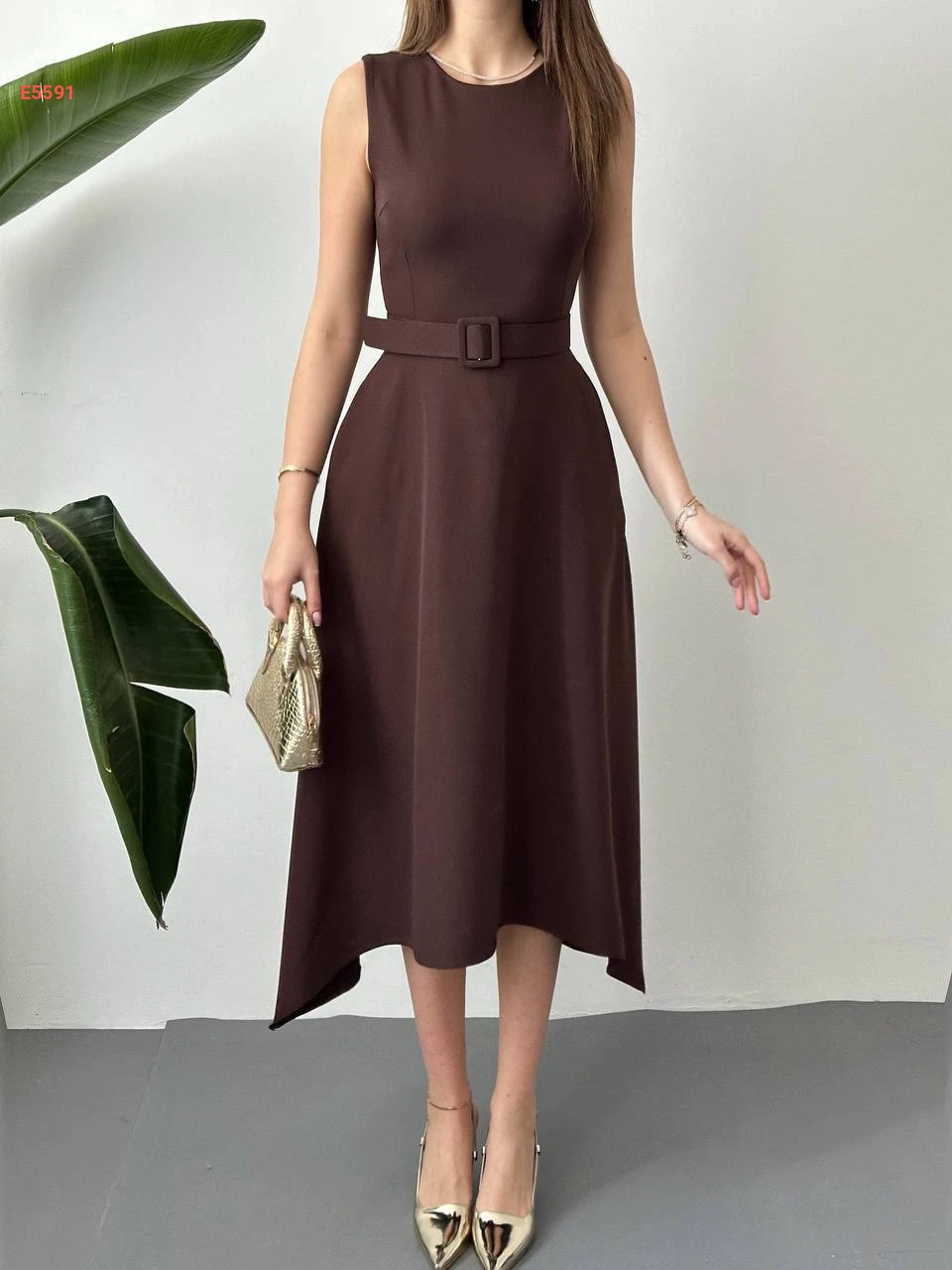فستان ميدي حفر مع حزام