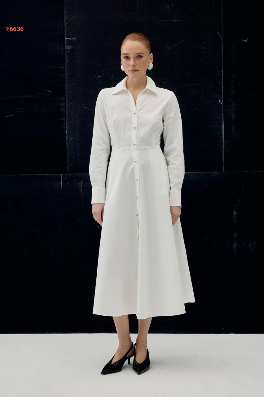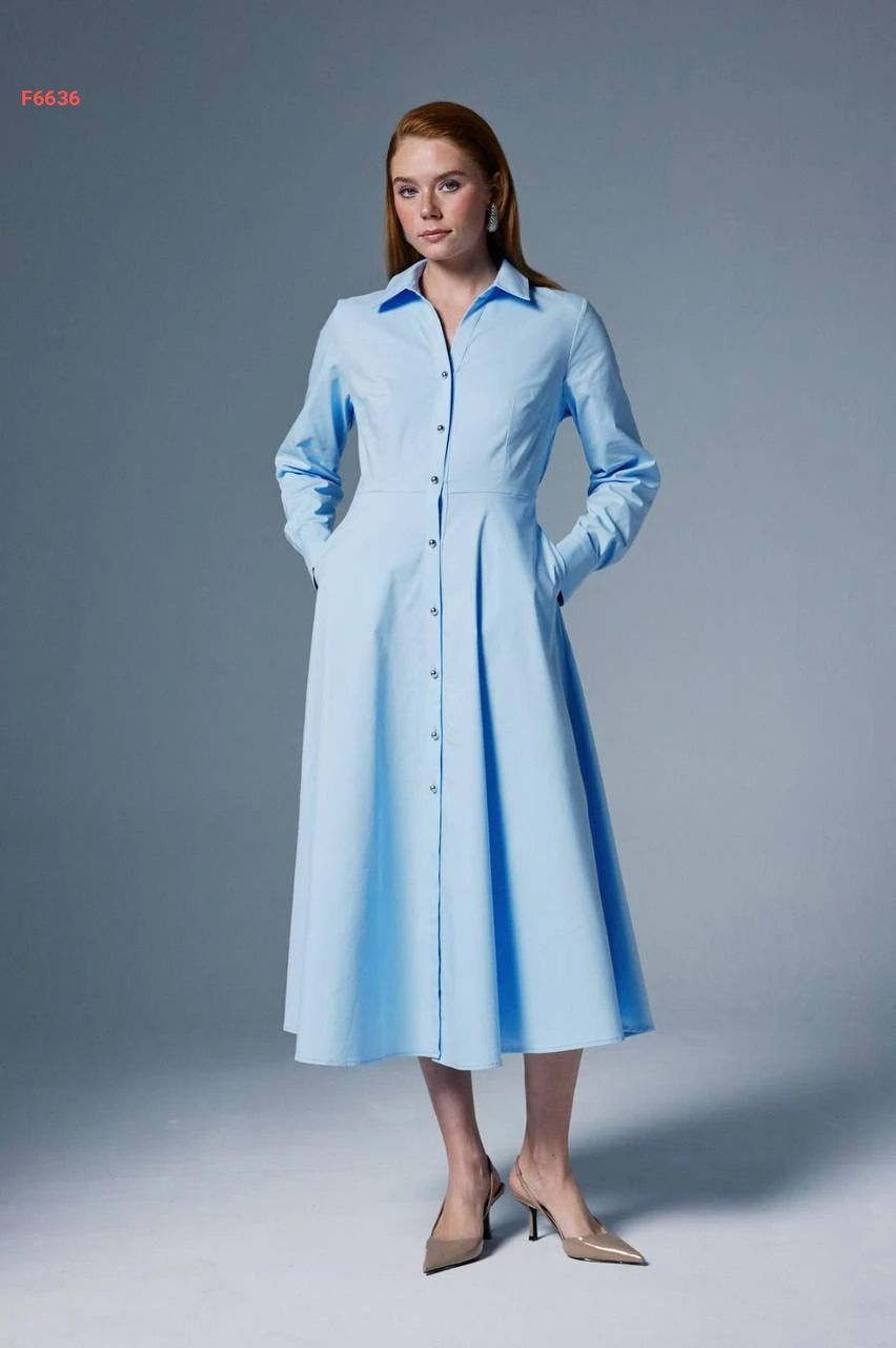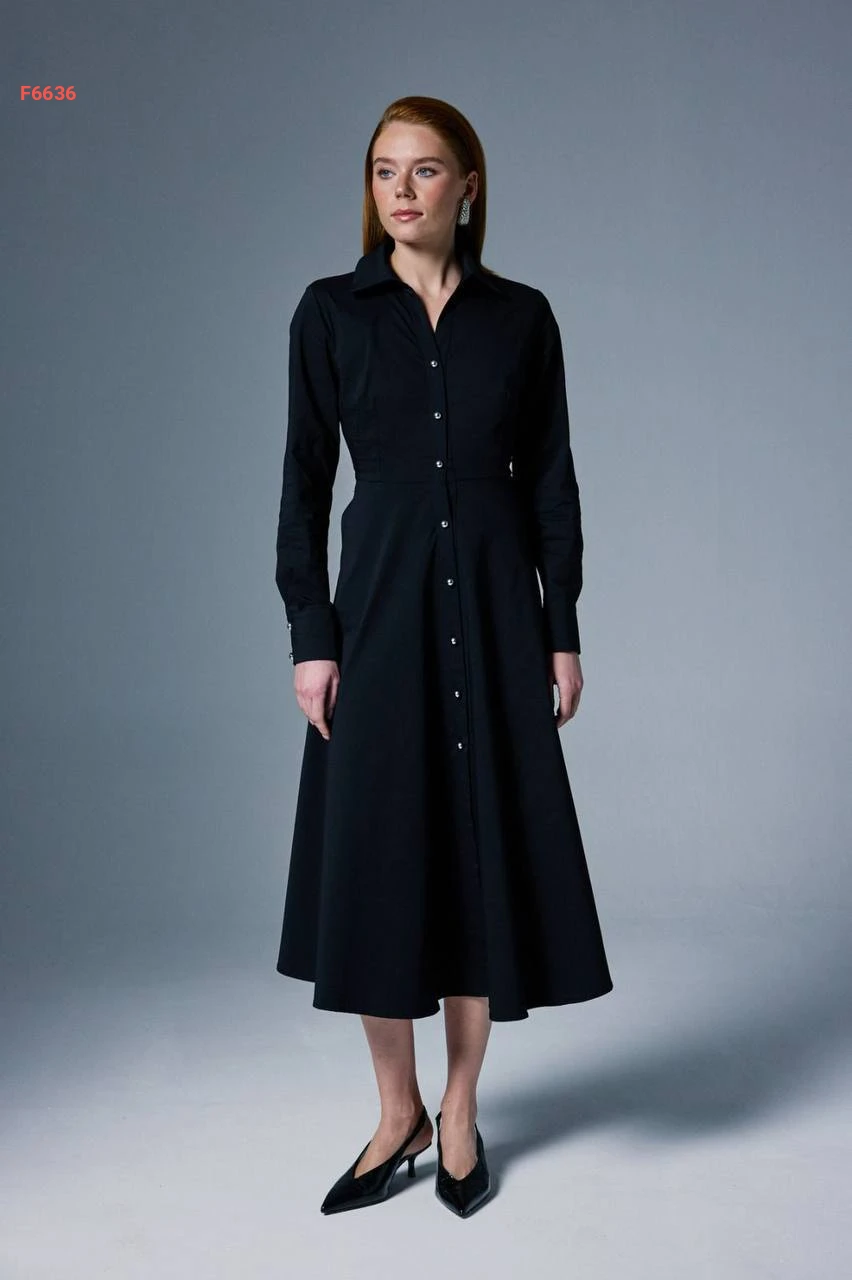فستان ميدي كلوش بأزرار