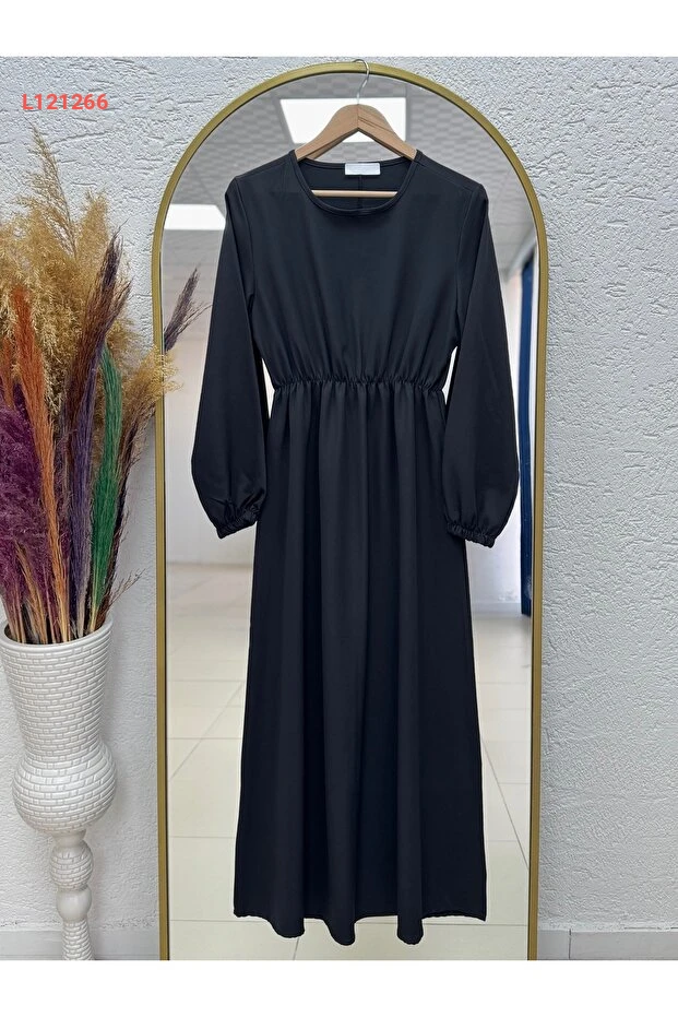 فستان نسائي محترم ببرل بكم طويل وخامة مريحة - الأسود