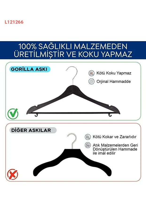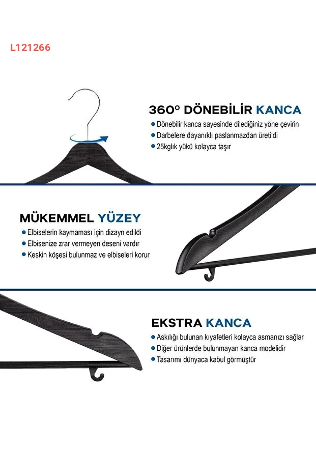 تقدم لك مجموعة MİLANO HOME من شماعات الملابس الخشبية المظهر بتصميمها الأسود الأنيق، حيث تجمع بين الجمال والعملية. هذه الشماعات القوية والمصنوعة من البلاستيك عالي الجودة توفر لك المتانة وتمنع انزلاق الملابس، مما يجعلها مثالية لتنظيم ملابسك بأفضل شكل. استمتع بالراحة والأناقة مع 10 شماعات تضمن لك مساحة مرتبة وأنيقة في خزانتك.