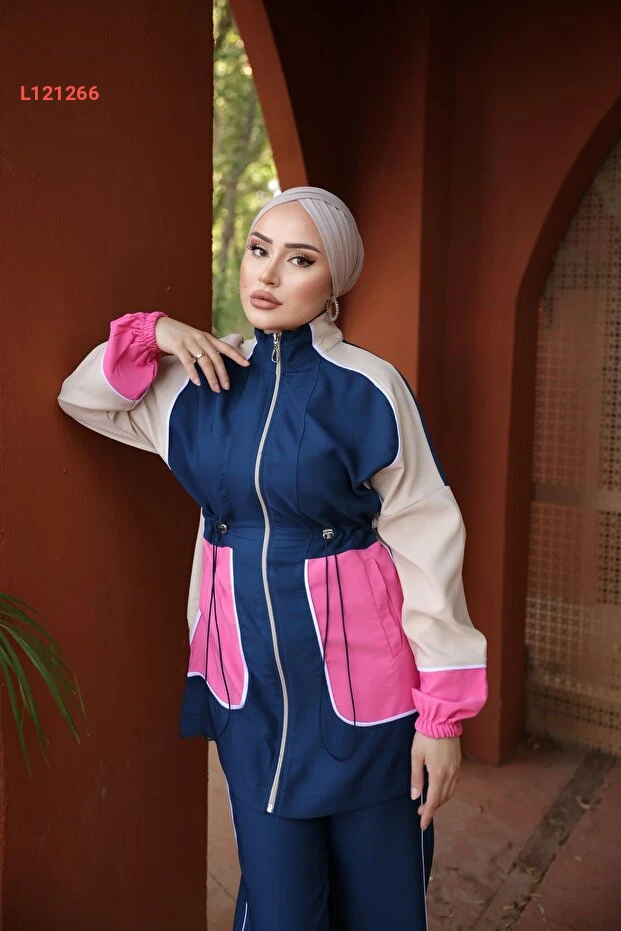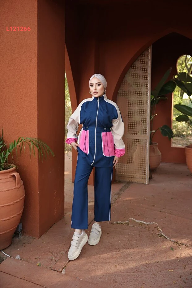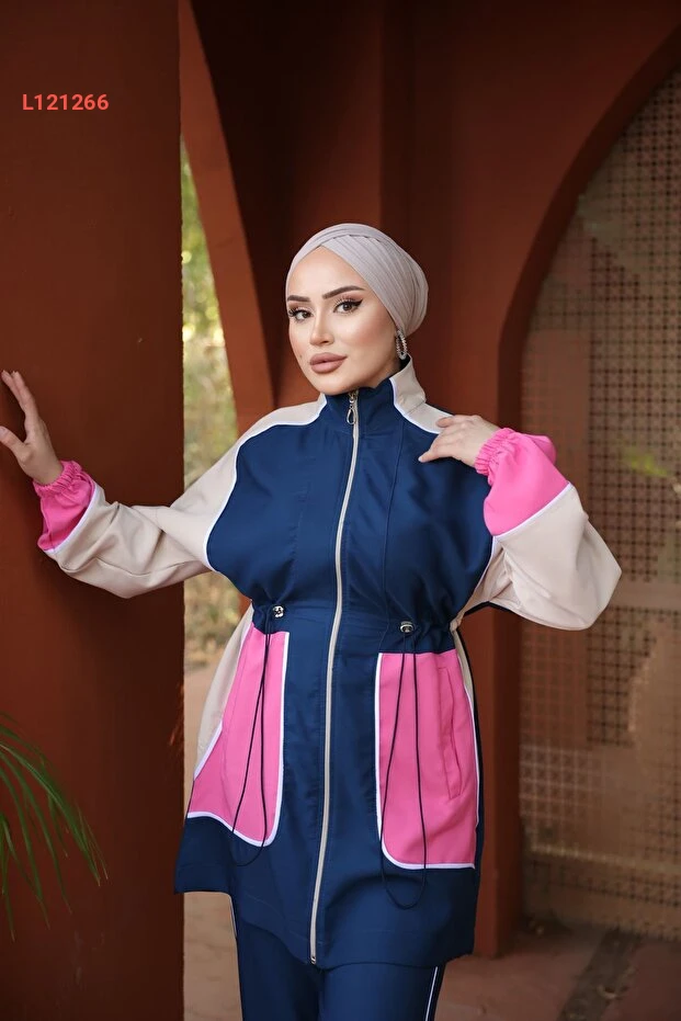 استمتع بالأناقة والراحة مع طقم MİMİ الفاخر للتستر. يتميز هذا الإطلالة بوجود سحاب عملي، مما يجعله خيارًا مثاليًا للمرأة العصرية التي تبحث عن الأناقة في كل موقف. مصنوع من خامات عالية الجودة، يوفر لك راحة استثنائية وأناقة لا مثيل لها.