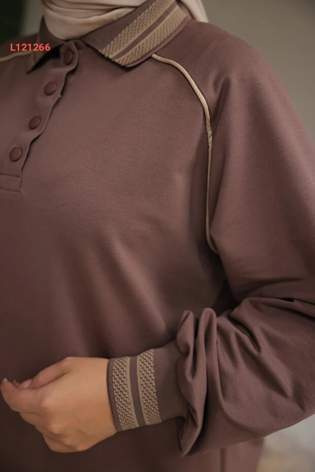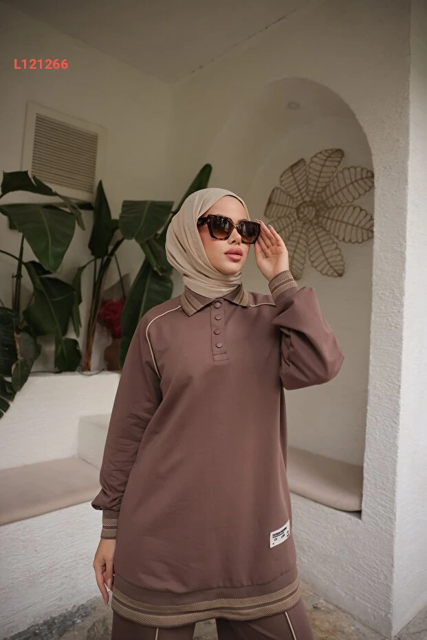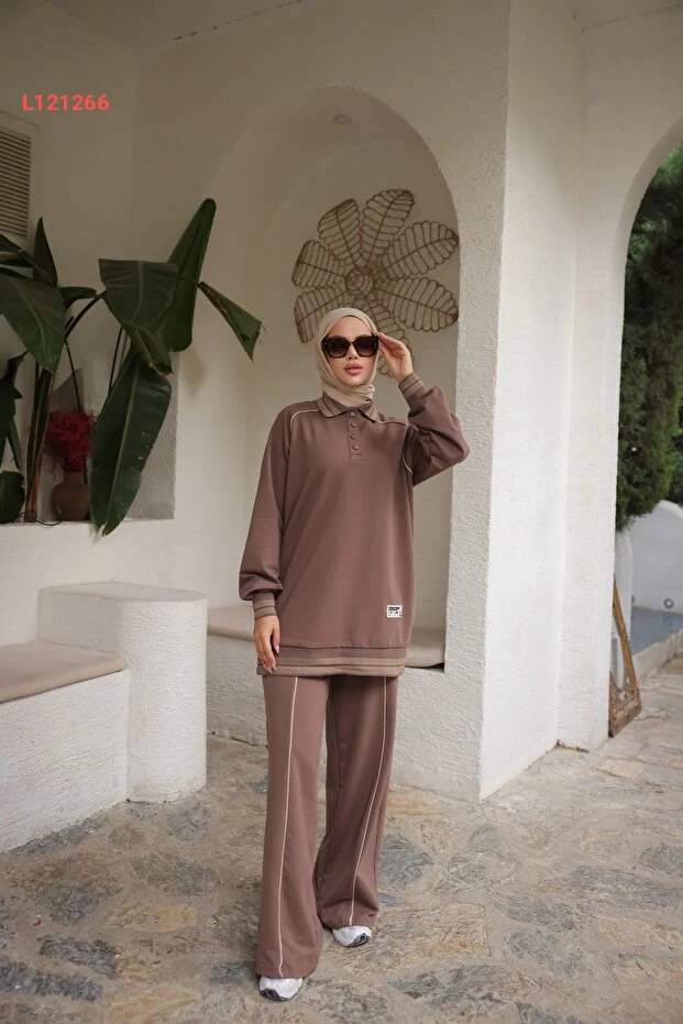 أزياء ميمي الفاخرة: طقم رياضي نسائي مزدوج بياقة بولو واسعة