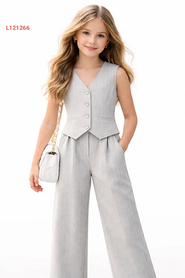 اكتشفي أناقة وراحة مع طقم السروال السترة المصممة للفتيات الشابات من 13 إلى 17 عامًا. يتميز بتصميم عصري مع خطوط مميزة، ليضمن تقديم مظهر أنيق ولطيف في نفس الوقت. اجعلي كل لحظة مميزة مع هذا الطقم الذي يجمع بين الأسلوب والراحة!