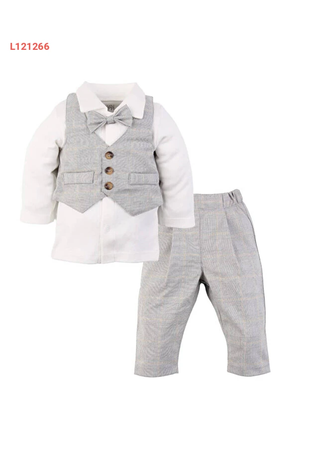 استمتع بمظهر أنيق لطفلك مع طقم "Mini Ropa Yelekli Erkek Bebek" المصنوع من قماش مربع رمادي بديع. يتميز بتصميمه العصري والأنيق، يضمن لراحتهم وسهولة الحركة في المناسبات الخاصة. اجعل لحظات طفلك unforgettable مع هذا الطقم المثالي!