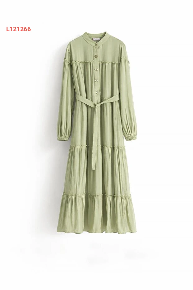 فستان طويل للبنات مع أكمام قابضة وحزام أخضر - كانسين