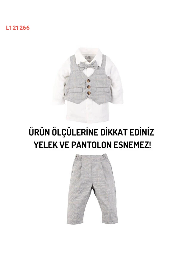 احصل على إطلالة أنيقة لطفلك مع طقم "Mini Ropa Yelekli Erkek Bebek" المصنوع من القماش القطني الناعم! يتميز بتصميمه الكلاسيكي الكاروهات باللون الرمادي، ويحتوي على سترة صغيرة تضيف لمسة من الفخامة، مما يجعله الخيار المثالي للمناسبات الخاصة. اجعل كل لحظة مميزة مع هذا الطقم الرائع!
