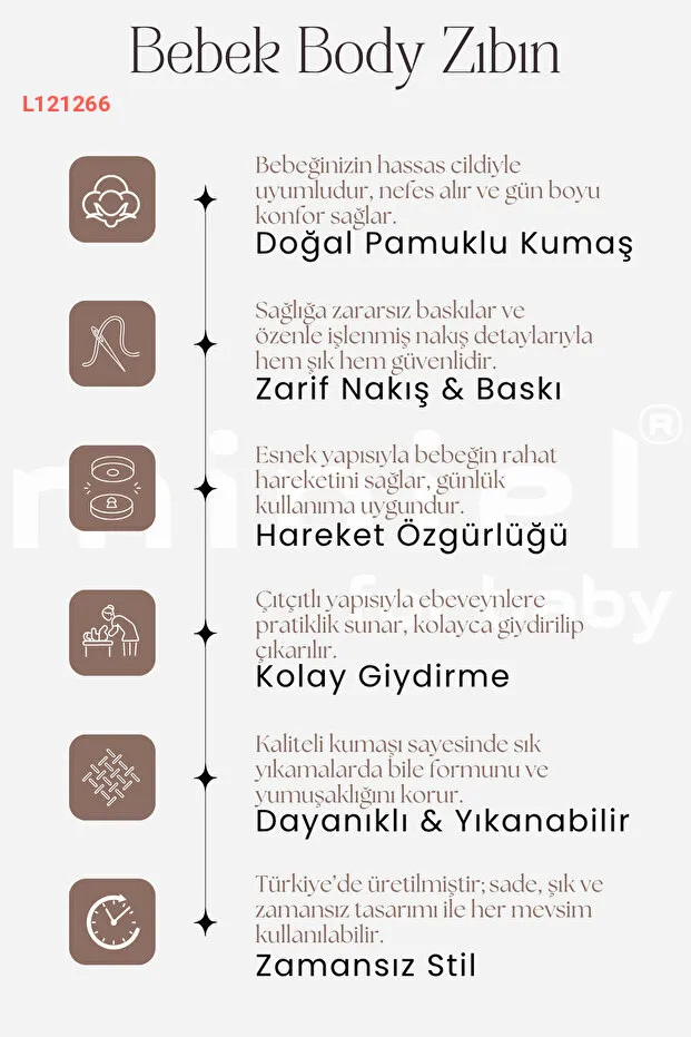 استمتع براحة وأناقة طفلك مع body زيبن 6 قطع بتصميم حيواني مميز من Miniel. مصنوع من 100% قطن عضوي، يضمن لك نسيجًا ناعمًا وصديقًا للبشرة، مثالي لبشرة الأطفال الحساسة. متوفر لأعمار 3-6-9-12 شهر، يجمع بين الراحة والأسلوب في كل قطعة!
