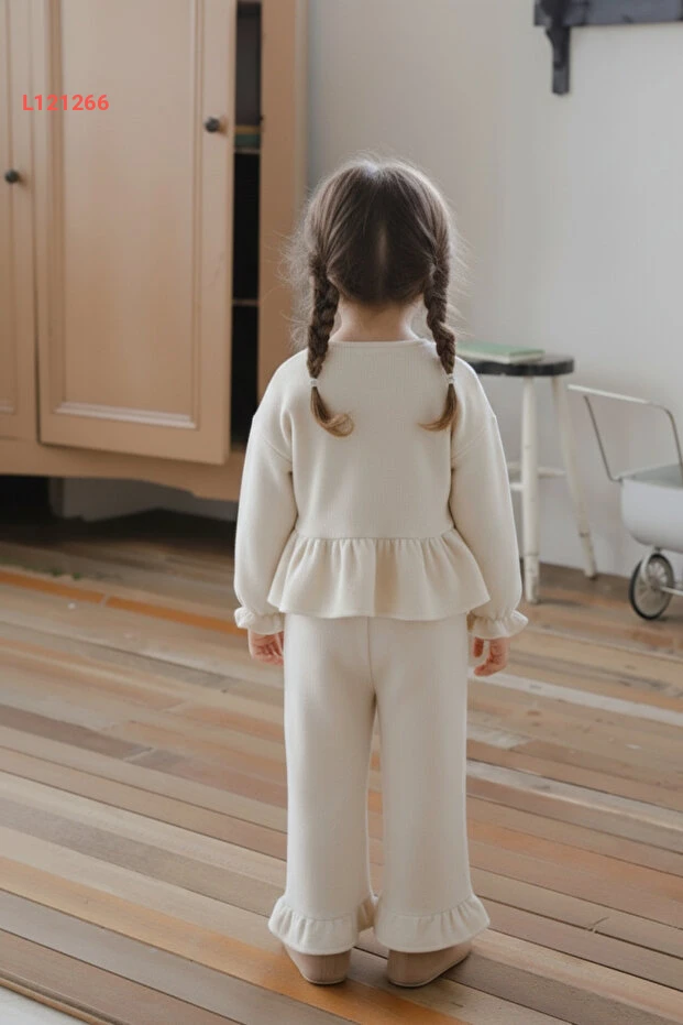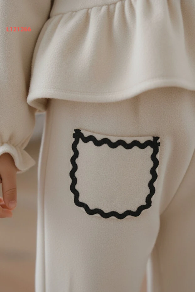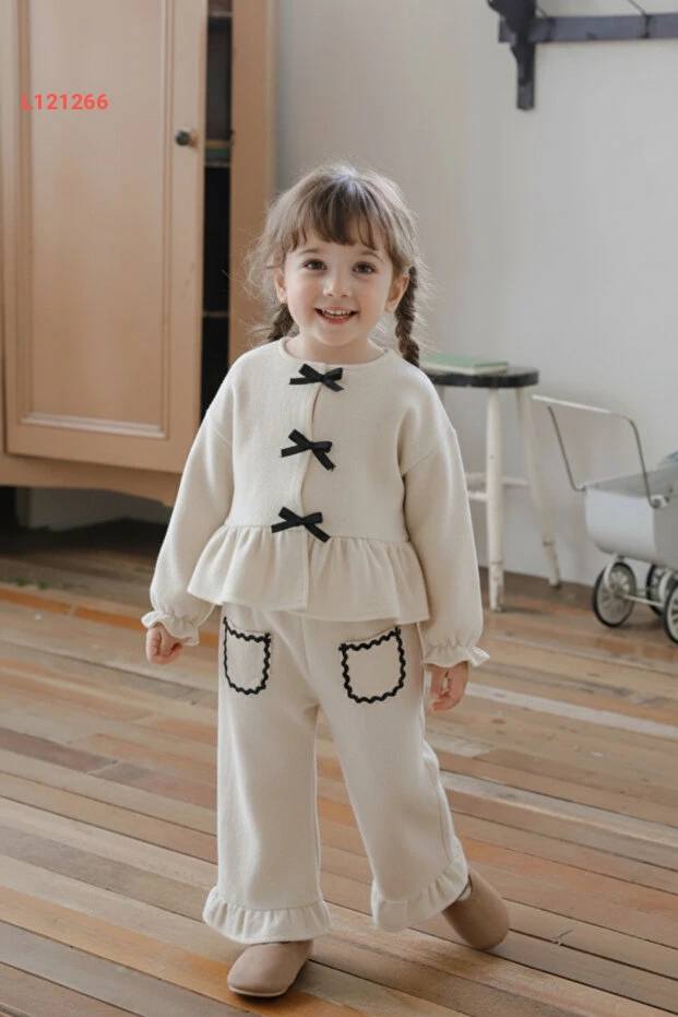 طقم بناتي علوي وسفلي مع تفاصيل الفيونكة جيوب لعيد الأضحى