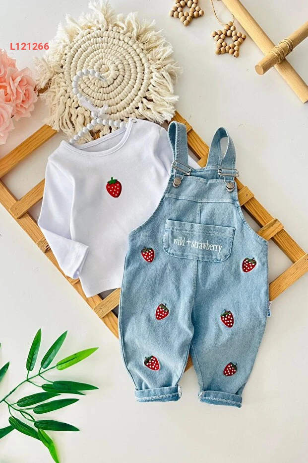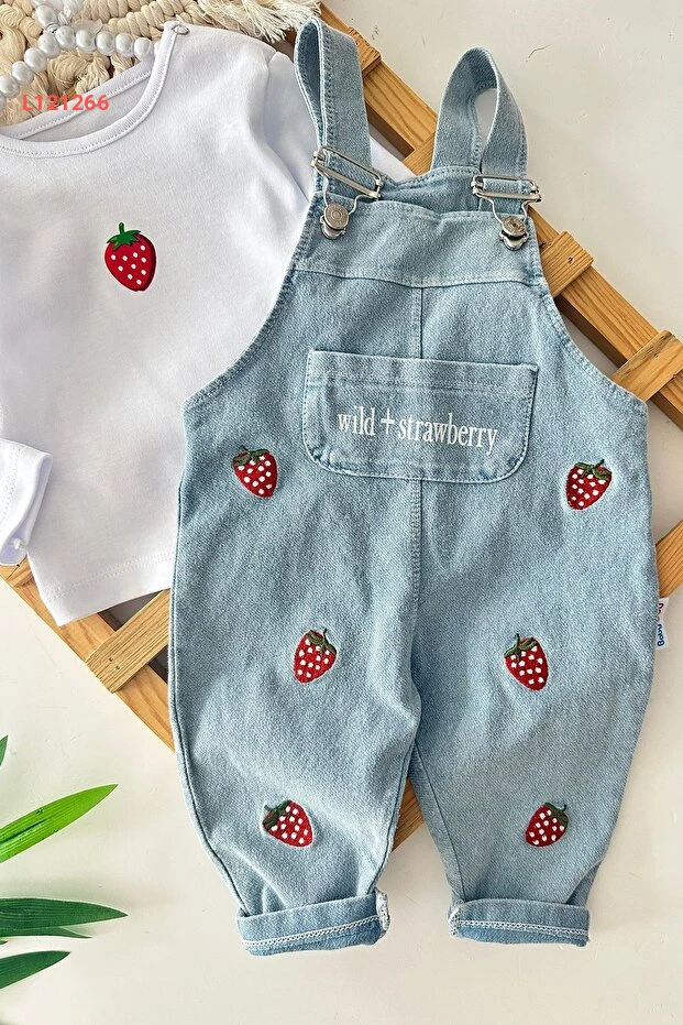 استمتعي بأناقة طفلتك مع مجموعة Miniğimin Cicileri المصممة خصيصًا للفتيات الصغيرات! يحتوي هذا السالوبت الدنيم الرائع على طباعة الفراولة الزاهية، مما يضيف لمسة مرحة ومبهجة إلى إطلالتها. بخامة مريحة وبأزرار سهلة الفتح، سيوفر لها هذا الطقم الحرية في الحركة والأناقة في كل مناسبة.