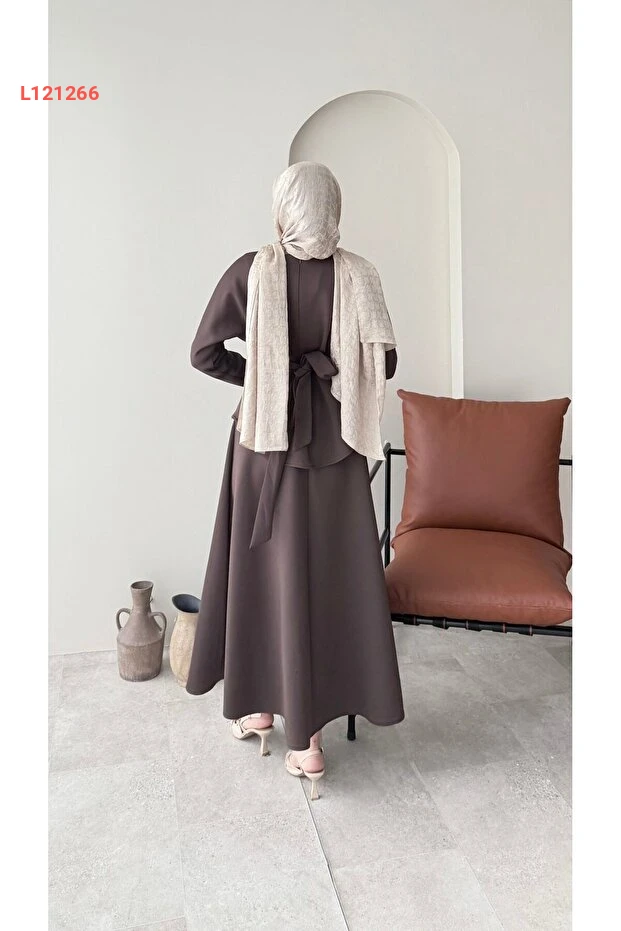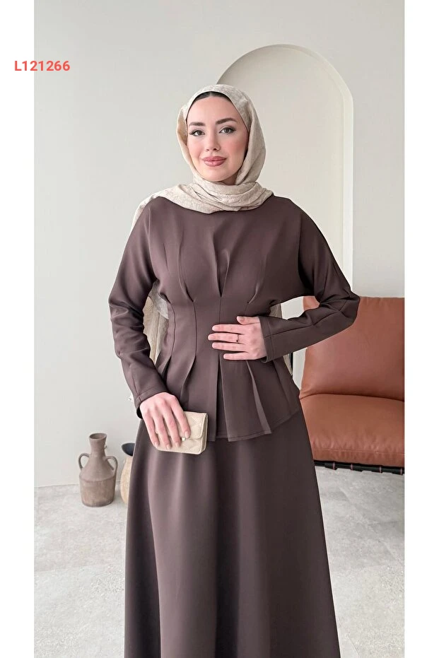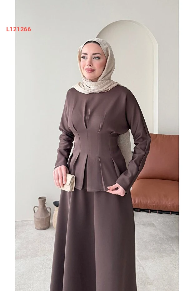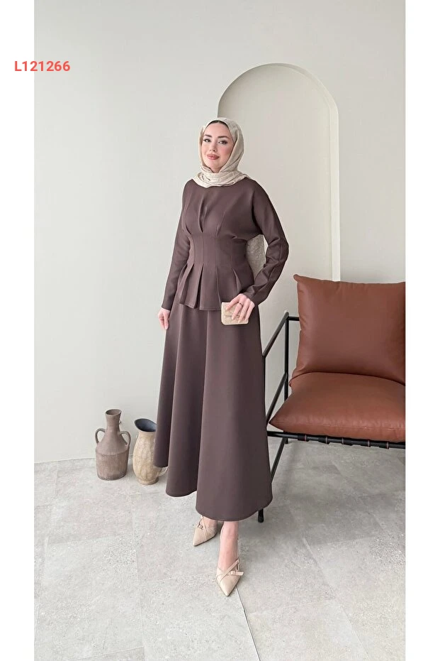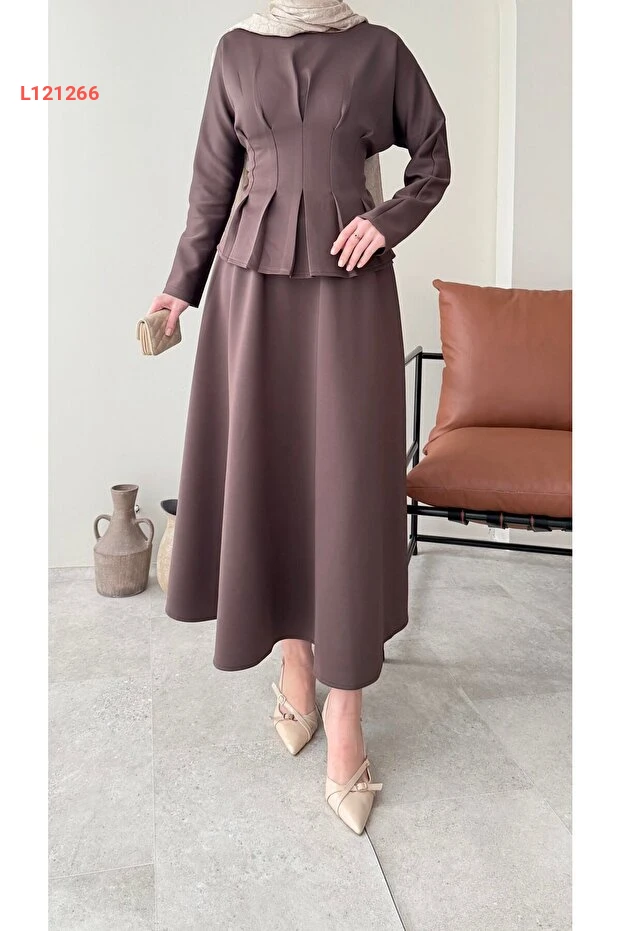 استمتعي بالأناقة والراحة مع طقم Miraydın Butik المصنوع من خامة السكوبر الفاخرة، والذي يتضمن تنورة مربوطة عند الخصر. يأتي بلون بني دافئ يضيف لمسة عصرية إلى إطلالتك، مع تصميم يناسب مختلف المناسبات، مما يجعله خيارًا مثاليًا للمرأة العصرية.
