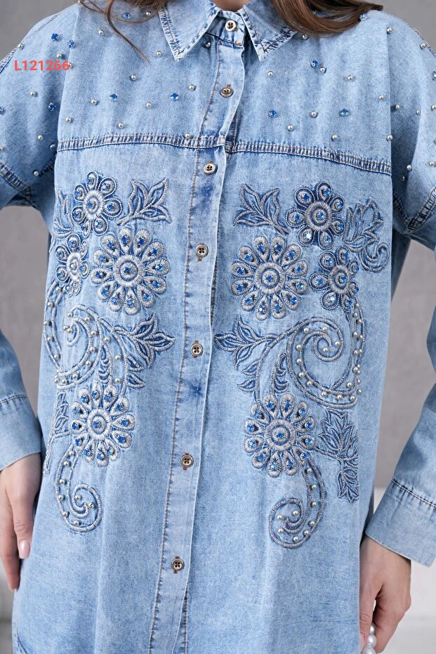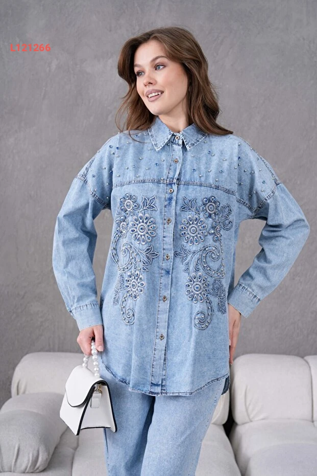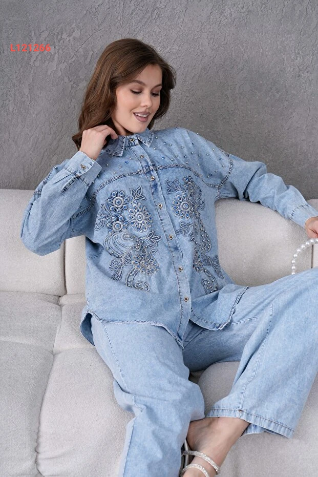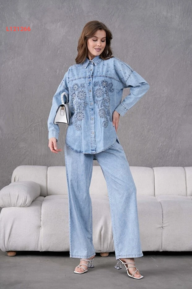 طقم جينز نسائي مزين بالتطريز والحجارة من ميس أالوس