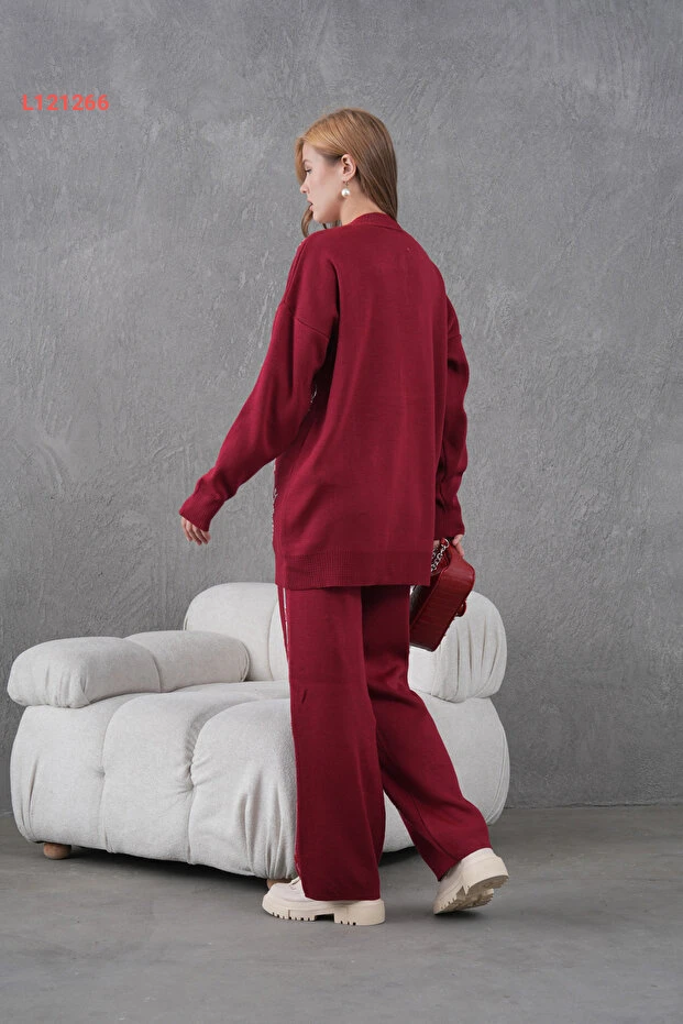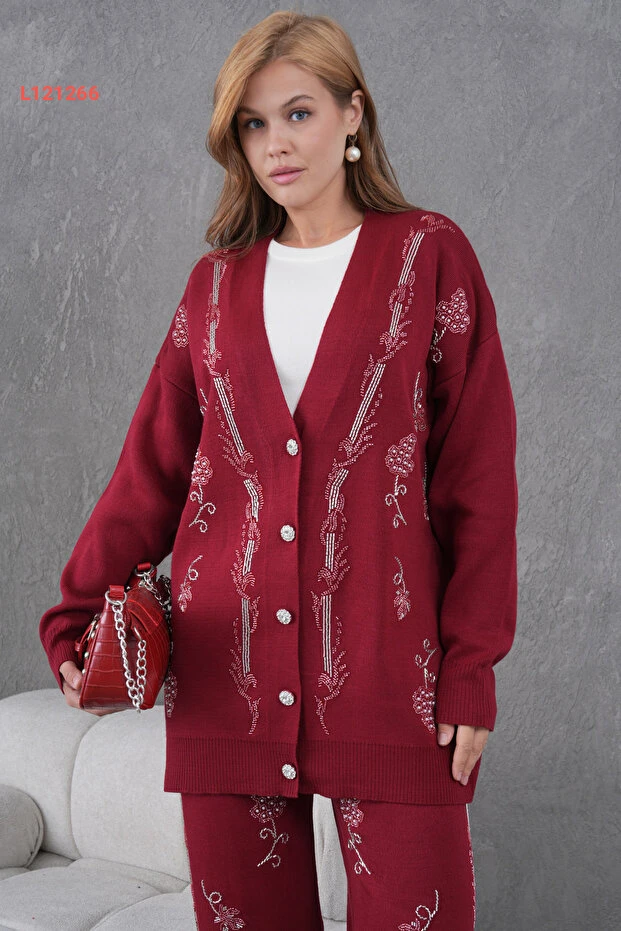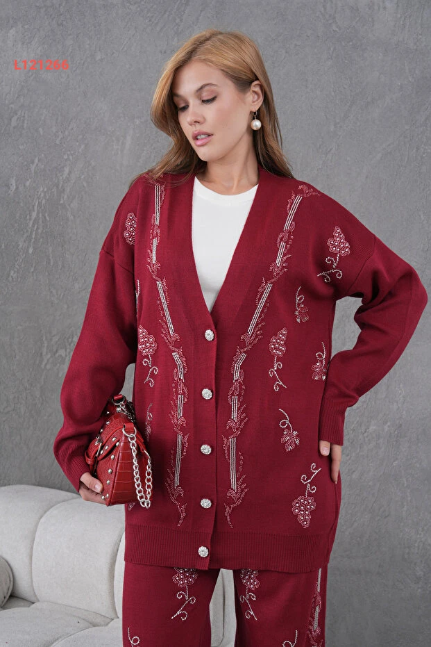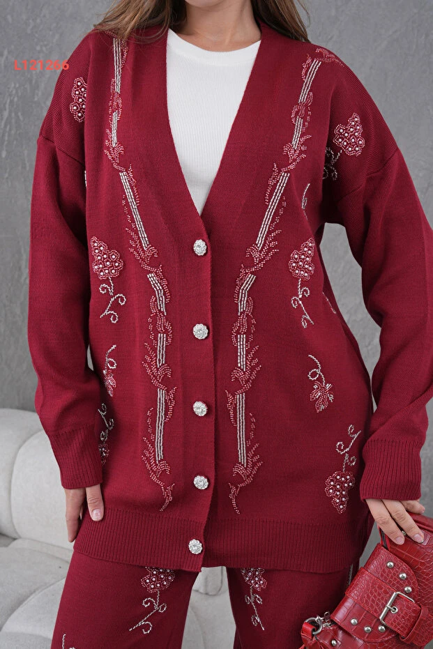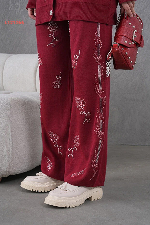 مجموعة علوص النسائية: كنزة صوفية مزينة بالخرز وبنطلون واسع
